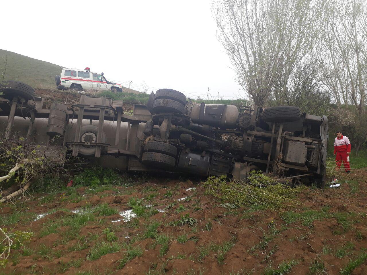 امدادرسانی به حادثه واژگونی تریلر در کیلومتر ۳۰ جاده بستان آباد به قره جمن