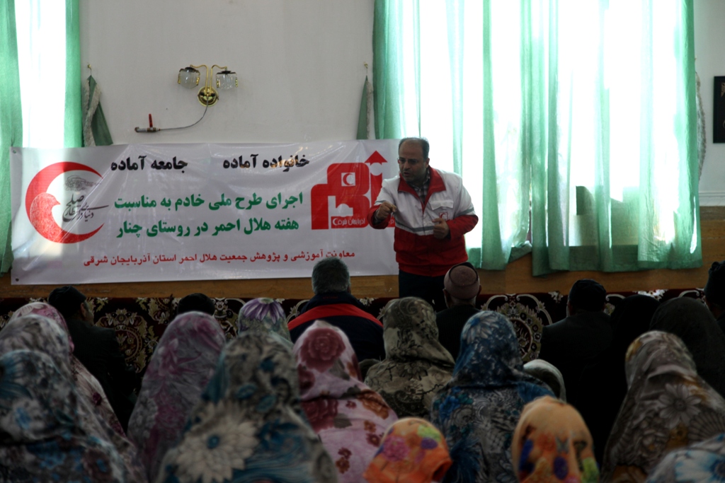 مدیر عامل جمعیت هلال احمر استان آذربایجان شرقی  نقش  آموزش های امدادی را در کاهش تلفات حوادث بسیار موثر دانست و افزود: در همین راستا معاونت آموزش جمعیت هلال احمر استان در این روز با دعوت از اهالی روستای چنار در مسجد بزرگ چهارده معصوم روستا اقدام به تشکیل کلاس کرده ومدرس آموزش ، طرح خادم و همچنین  نحوه اقدام درست در مقابل وقوع حادثه سیل را  برای 200 تن از شرکت کنندگان توضیح و بروشورهای لازم در میان آنها پخش گردید .