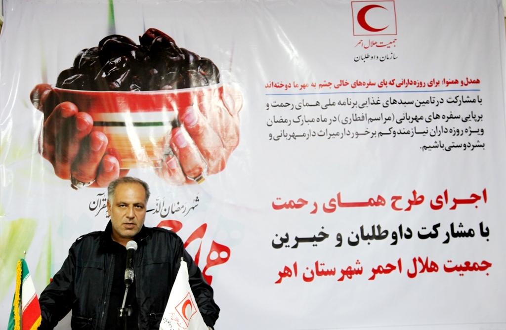فیض اله محمدیان رئیس جمعیت هلال احمر شهرستان اهر در تشریح طرح همای رحمت هلال احمر اهر گفت : امسال هم همانند سالهای قبل در ماه مبارک رمضان از خیرین ونیکوکاران دعوت شد تا همانند سالهای قبل در تهیه بسته های حمایتی از خانواده های محروم و کم در آمد هلال احمر را یاری نمایند که با کمک خیرین و مسئولین شهر 1500 بسته بهداشتی و غذایی به ارزش ریالی بالغ بر یک میلیارد و 250 میلیون ریال تهیه و در لیلی قدر در میان نیازمندان توزیع می شود .