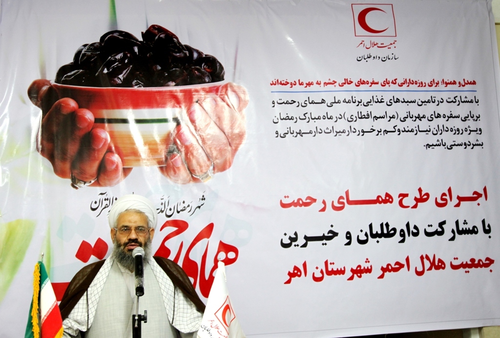 وی اظهار داشت : شهرستان اهر، سالیان متمادی است که با محوریت هلال احمر در اجرای طرح همای رحمت در سطح بسیار بالایی ایفای نقش می کند وجوانان هلال احمر و دستگاههای مختلف دست به دست هم داده و هر سال بستههای غذایی و بهداشتی را در هلال احمر تهیه و در لیالی پرفیض قدر بدست نیازمندان و محرومان می رسانند که من در اینجا از زحمات خالصانه و تلاشهای صادقانه همه جوانان برومندو پرسنل تلاشگر هلال احمر اهر که همه ساله با اجرای طرح همای رحمت به کمک نیازمندان می شتابند قدردانی می کنم .