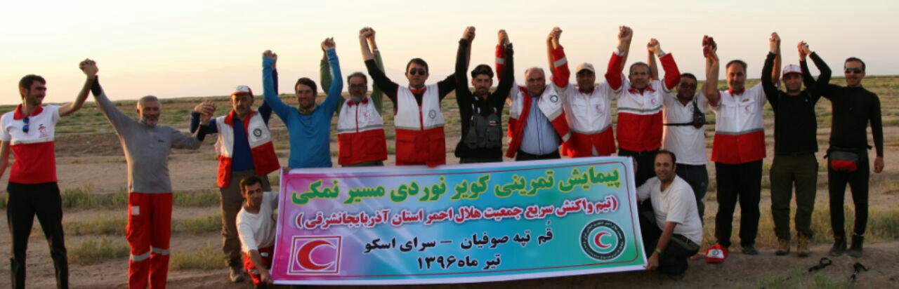 وی اظهار داشت :بمنظور توان افزایی وتمرین استقامت نجاتگران ،روز یکشنبه 18 تیر با حضور اعضای تیم واکنش سریع جمعیت هلال احمر استان و همچنین با حضور کویرنورد استان "یونس موحد " مسیر 47 کیلومتری قم تپه صوفیان تا حسن آباد اسکو در مدت15ساعت طی گردید