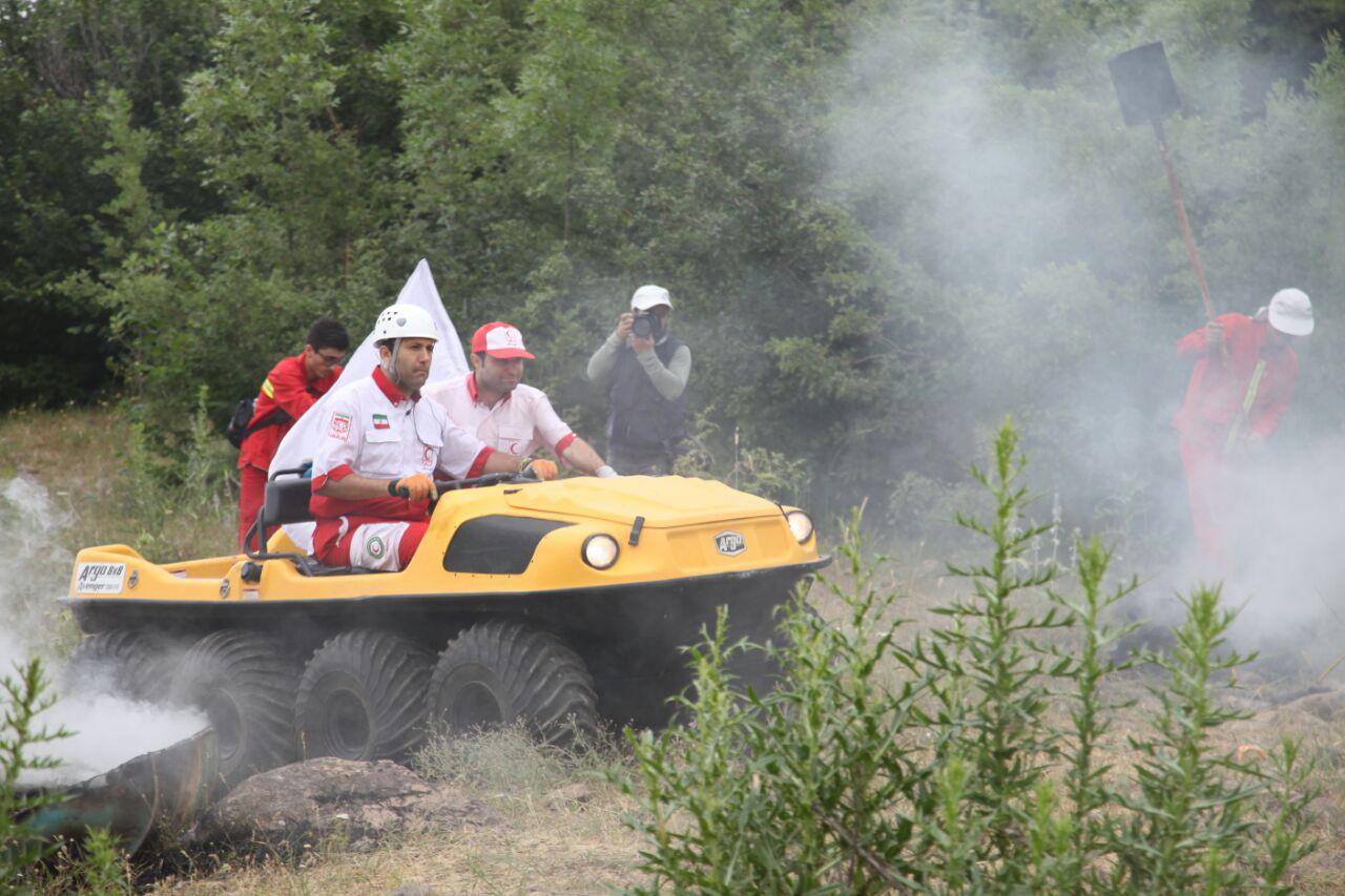 معاون امدادو نجات  افزود :در این مانور ،نجاتگران جمعیت هلال احمر بمحض. دریافت خبر وقوع آتش سوزی در مراتع و مناطق جنگلی با استفاده از خودرهای چند منظوره آرگو و موتور چهار چرخ و موتور سیکلت کراس ، دو دستگاه آمبولانس ، 3 دستگاه خودروی نجات،5 دستگاه خودروی کمکدار  و 27 نفر نیروی عملیاتی و 12 نفر نیروی ستادی نسبت به پشتیبانی و انجام عملیات امداد و نجات ، خدمات کمکهای اولیه و انتقال مصدومین ، کمک در اطفا حریق ، برابر سناریوی تنظیم شده  مانور توسط معاونت آموزش و پژوهش جمعیت هلال احمر استان  نقش آفرینی کردند .
