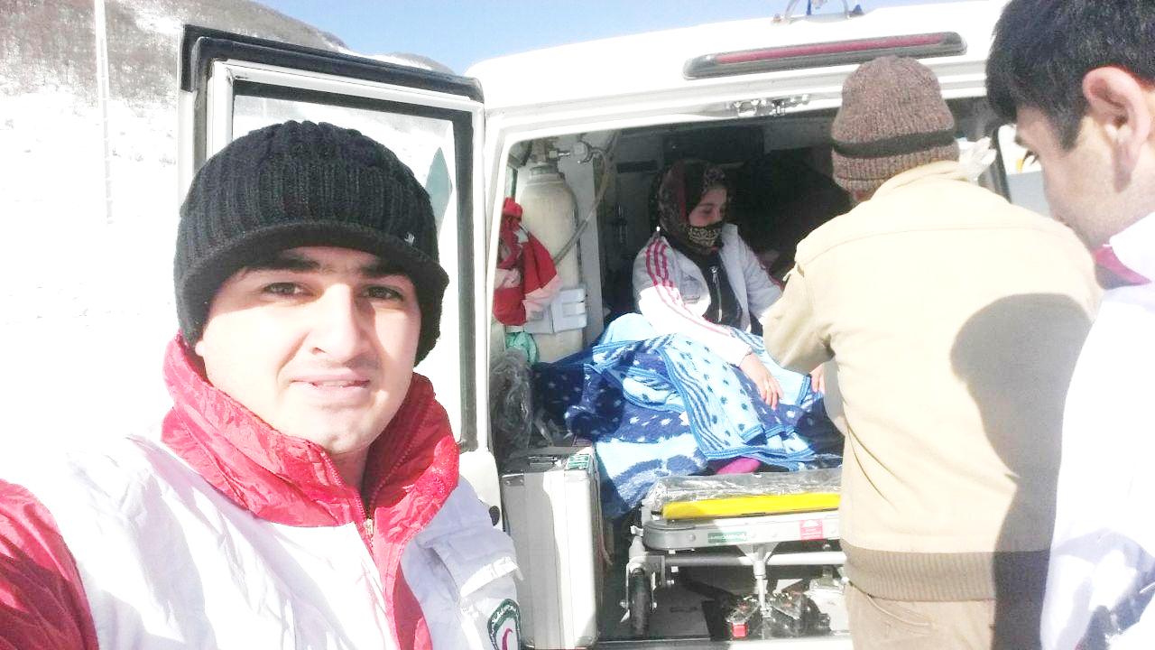 انتقال خانم بیمار از روستای صعب العبور "هوچ" بخش منجوان به مرکز درمانی