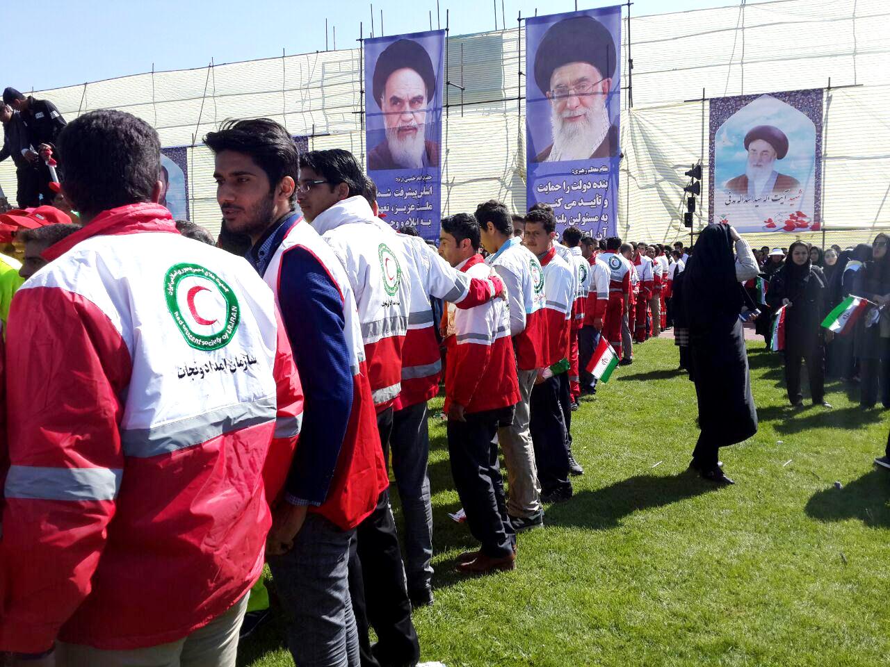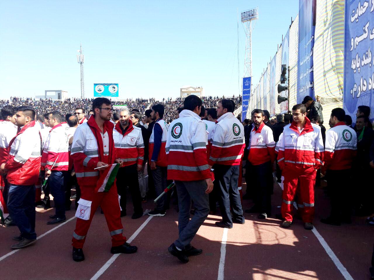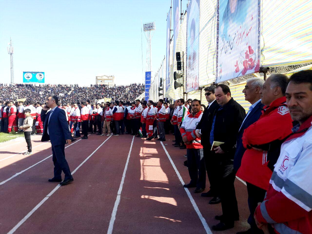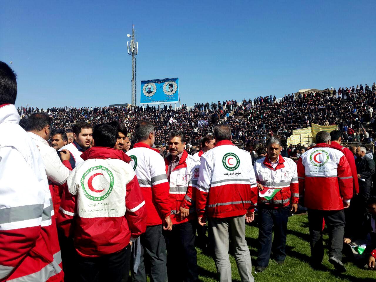 این گزارش می افزاید : همچنین صدها تن از نجاتگران ورزیده جمعیت هلال احمرآذربایجان شرقی با استقرار در محوطه و داخل ورزشگاه باغشمال تبریز محل سخنرانی رئیس جمهور اقدام به پوشش امدادی مراسم کرده و بالگرد جمعیت هلال احمر بمنظور پشتیبانی هوایی بر فراز آسمان تبریز به پرواز در آمد..