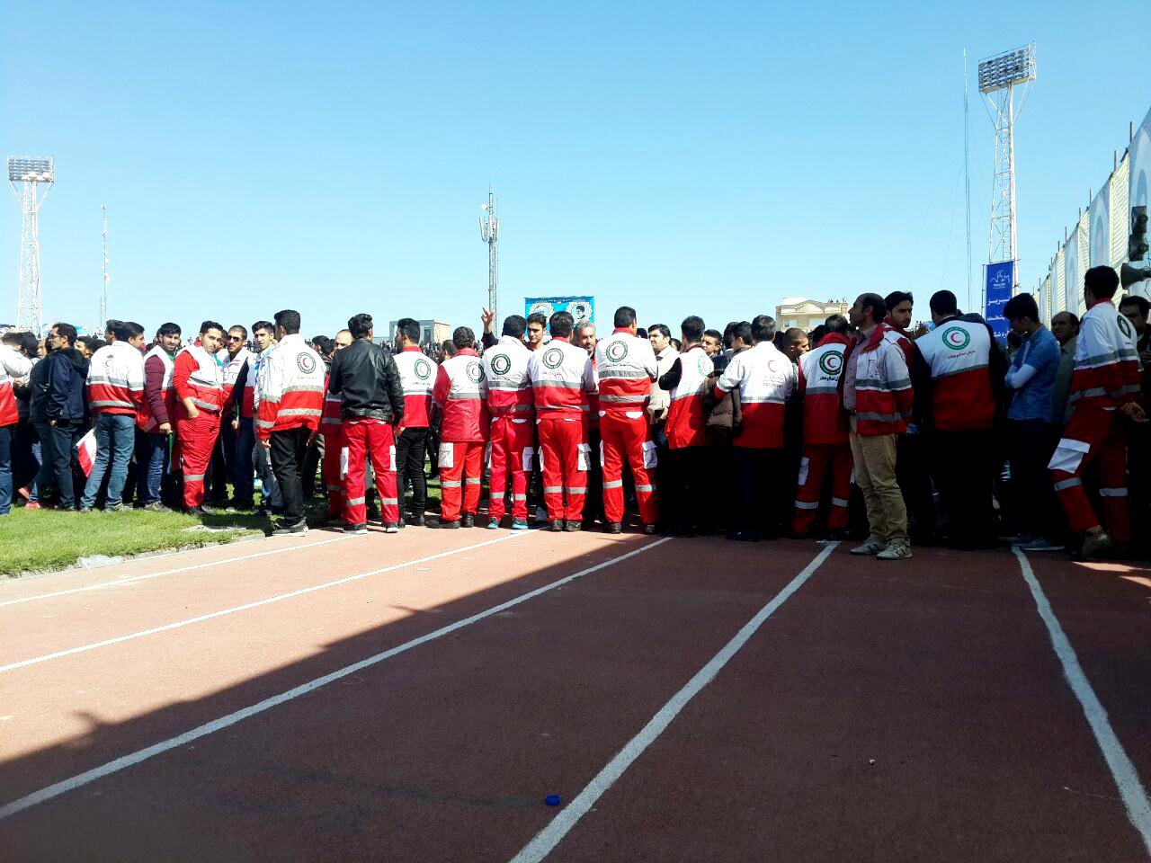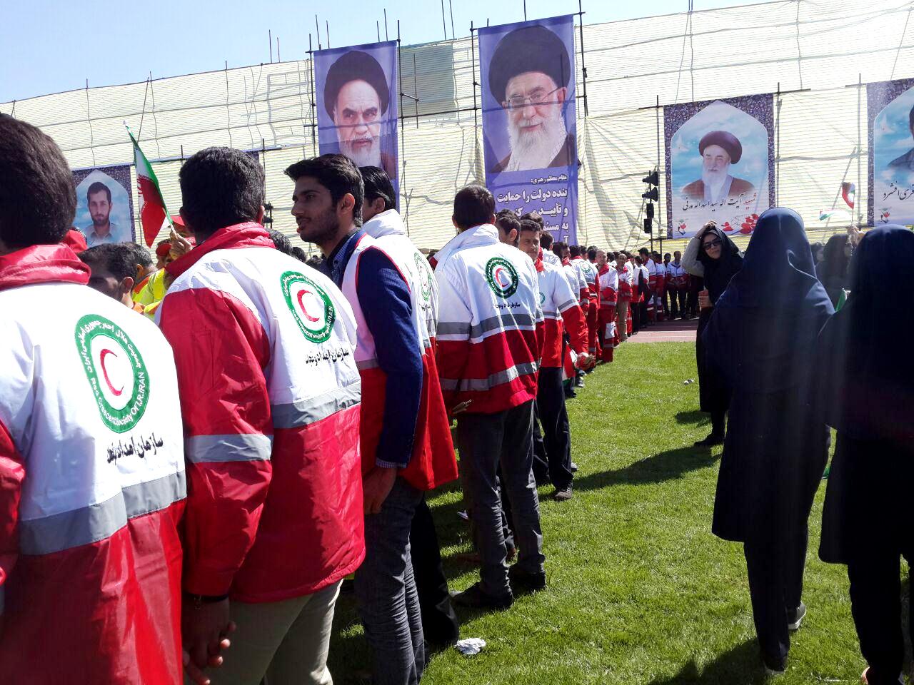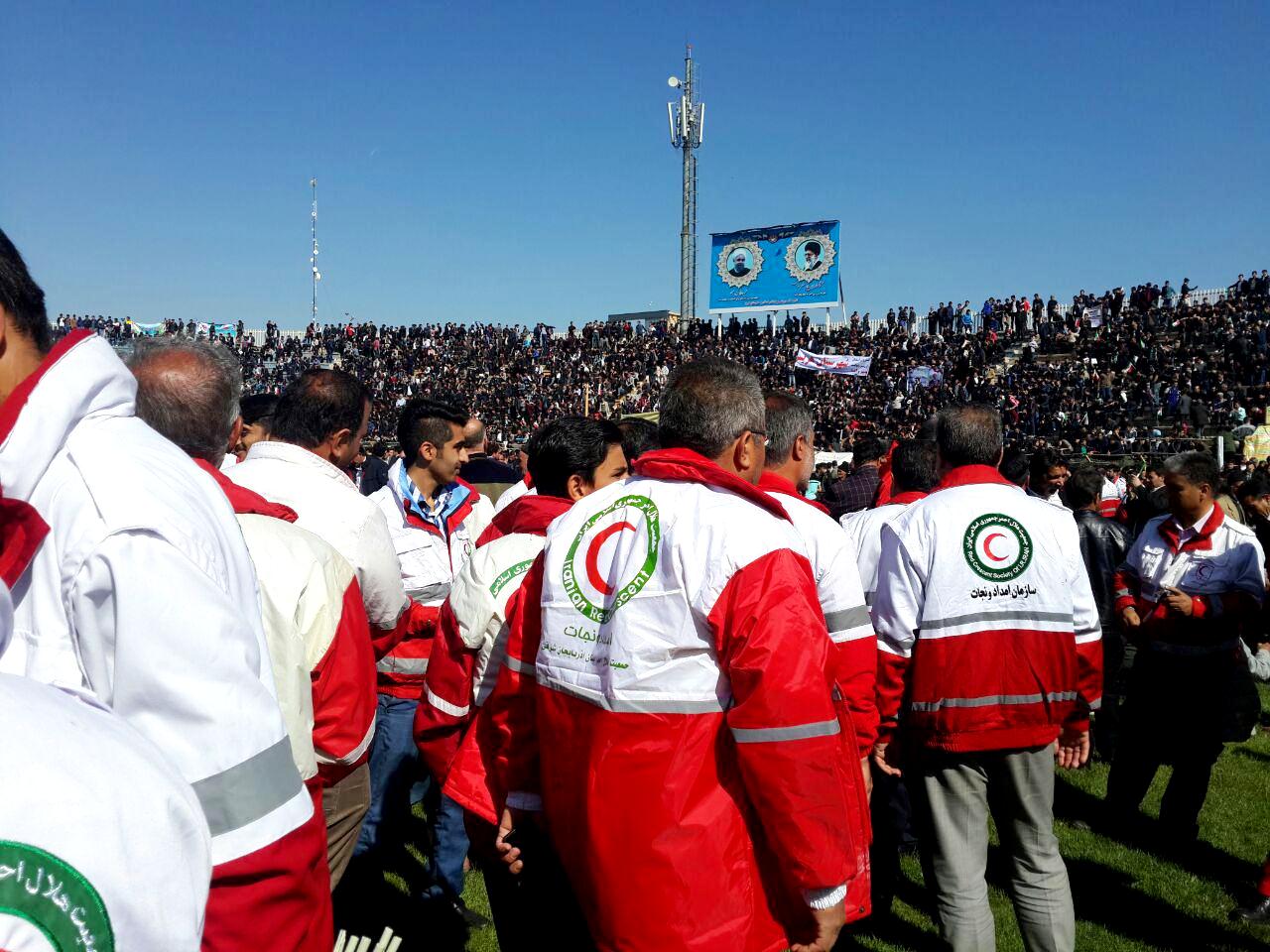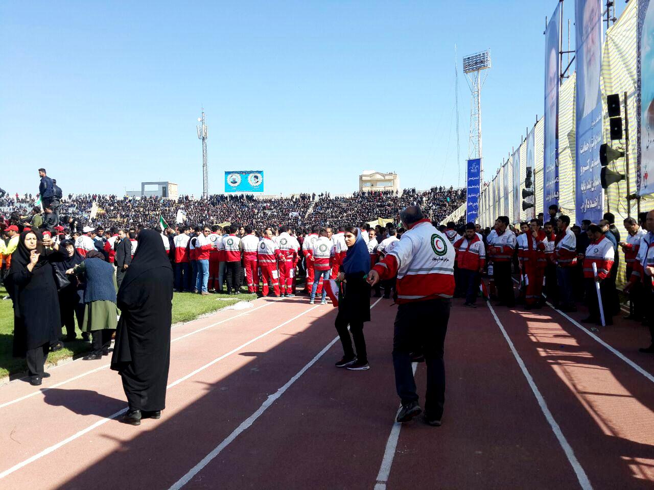 این گزارش می افزاید : همچنین صدها تن از نجاتگران ورزیده جمعیت هلال احمرآذربایجان شرقی با استقرار در محوطه و داخل ورزشگاه باغشمال تبریز محل سخنرانی رئیس جمهور اقدام به پوشش امدادی مراسم کرده و بالگرد جمعیت هلال احمر بمنظور پشتیبانی هوایی بر فراز آسمان تبریز به پرواز در آمد..