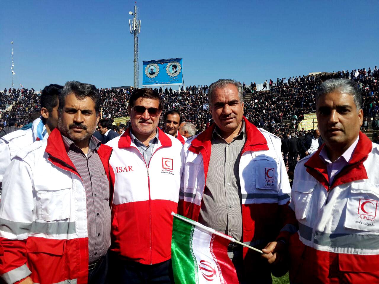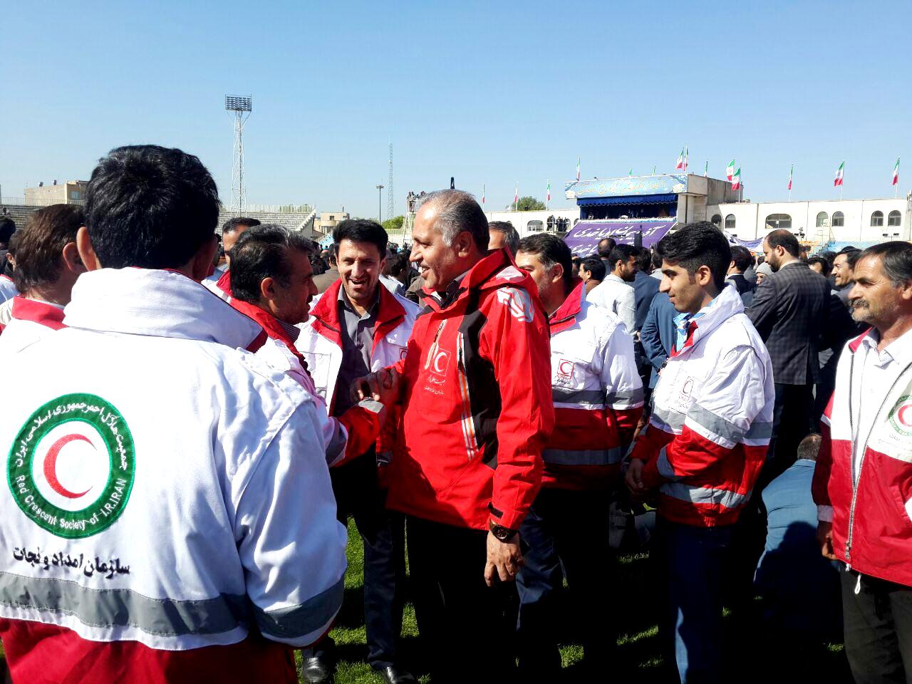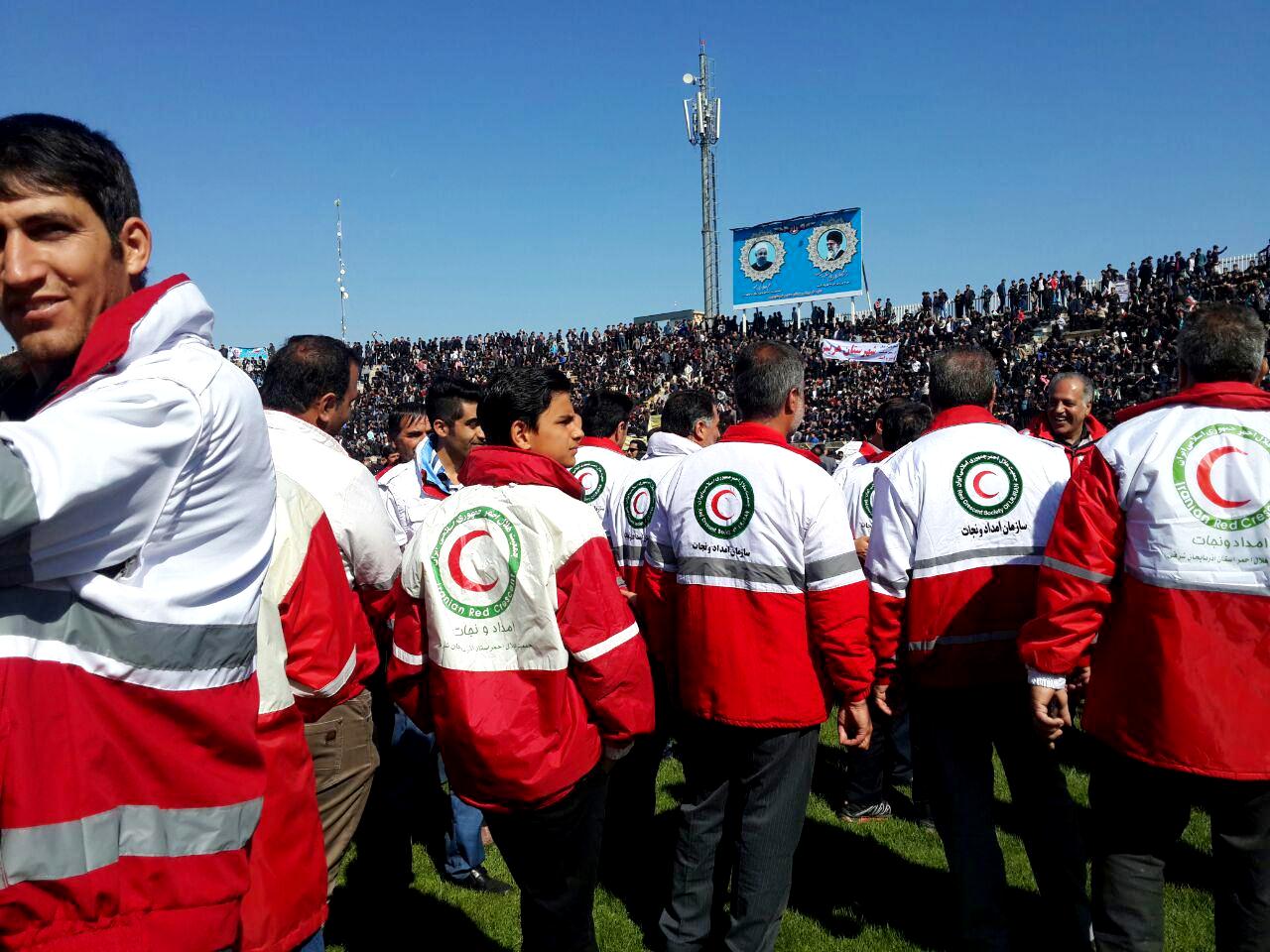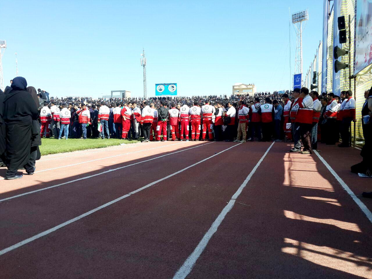 این گزارش می افزاید : همچنین صدها تن از نجاتگران ورزیده جمعیت هلال احمرآذربایجان شرقی با استقرار در محوطه و داخل ورزشگاه باغشمال تبریز محل سخنرانی رئیس جمهور اقدام به پوشش امدادی مراسم کرده و بالگرد جمعیت هلال احمر بمنظور پشتیبانی هوایی بر فراز آسمان تبریز به پرواز در آمد..