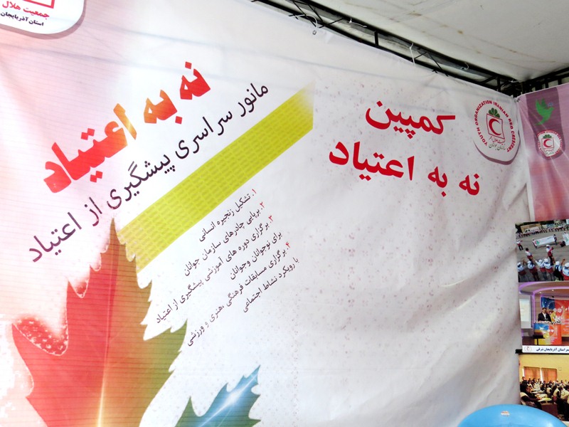 معاونت امور جوانان جمعیت هلال احمر استان آذربایجان شرقی اقدام به برپایی غرفه در نمایشگاه پیشگیری از اعتیاد در تبریز نمود .