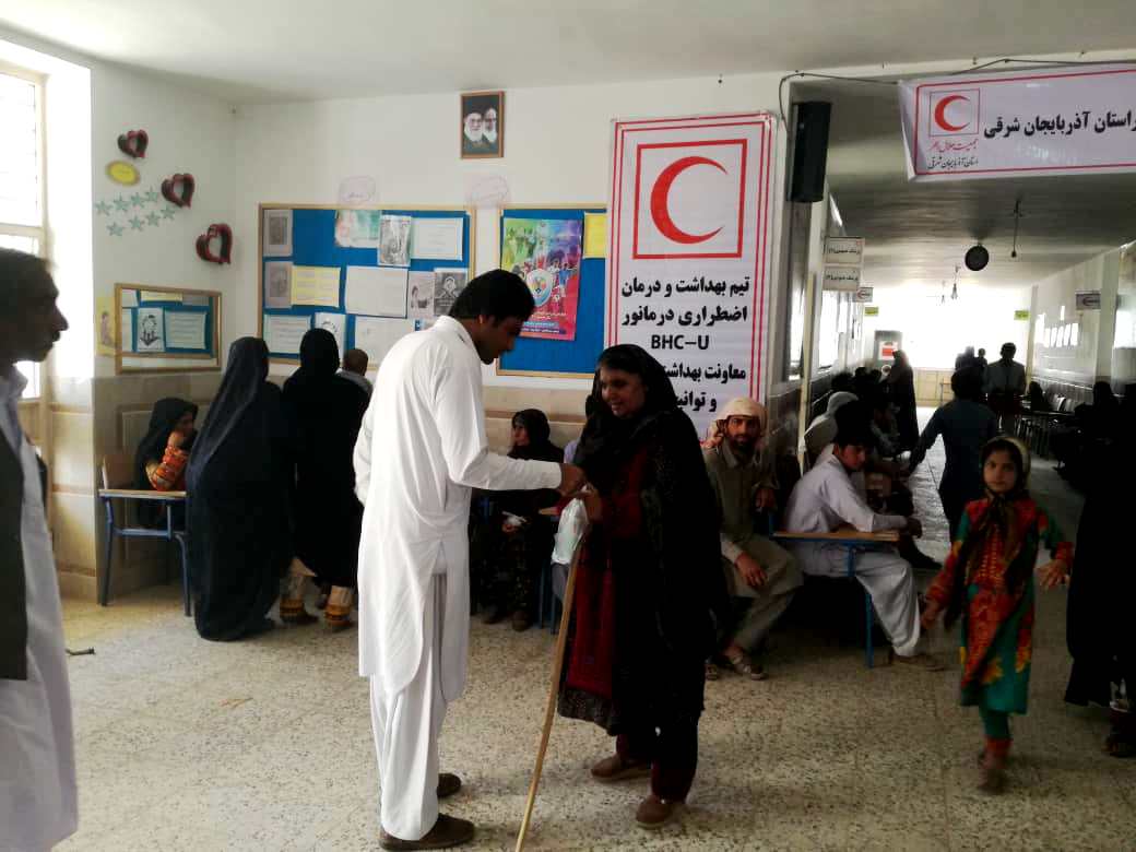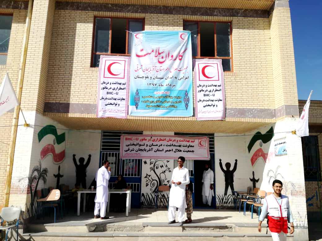 استقرار کاروان سلامت جمعیت هلال احمر استان آذربایجان شرقی در بخش کورین استان سیستان و بلوچستان و ارائه خدمات درمانی +تصاویر