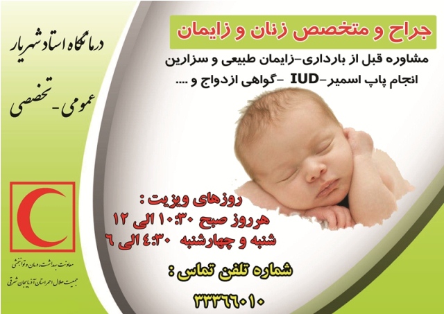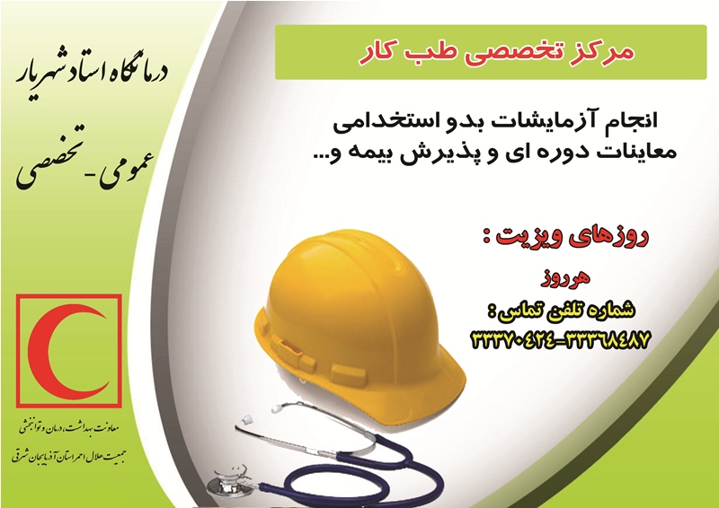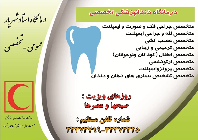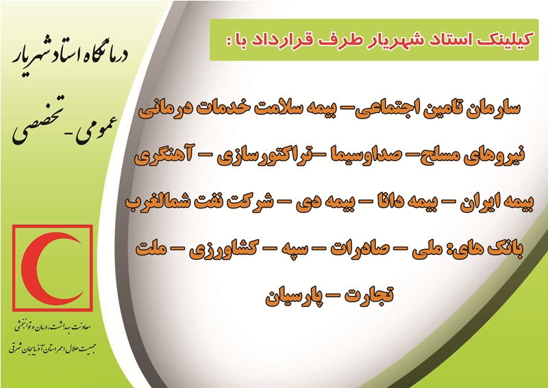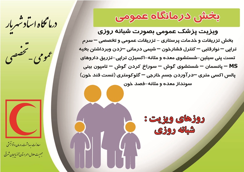 معرفی اینفوگرافیک درمانگاه عمومی و تخصصی استاد شهریار معاونت بهداشت ،درمان و توانبخشی جمعیت هلال احمر استان آذربایجان شرقی