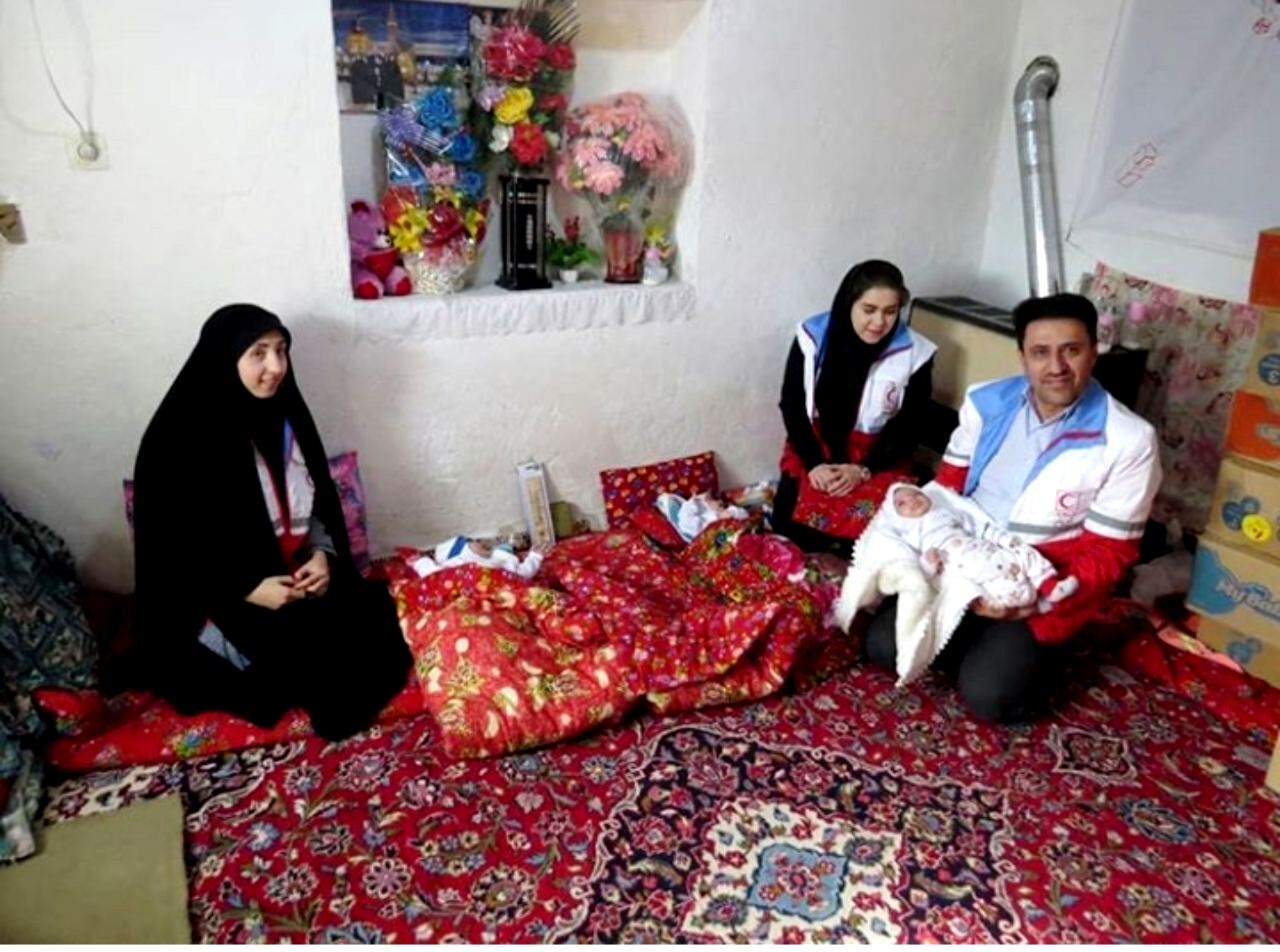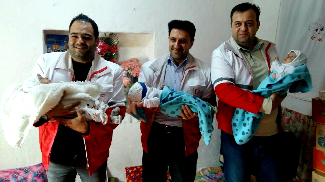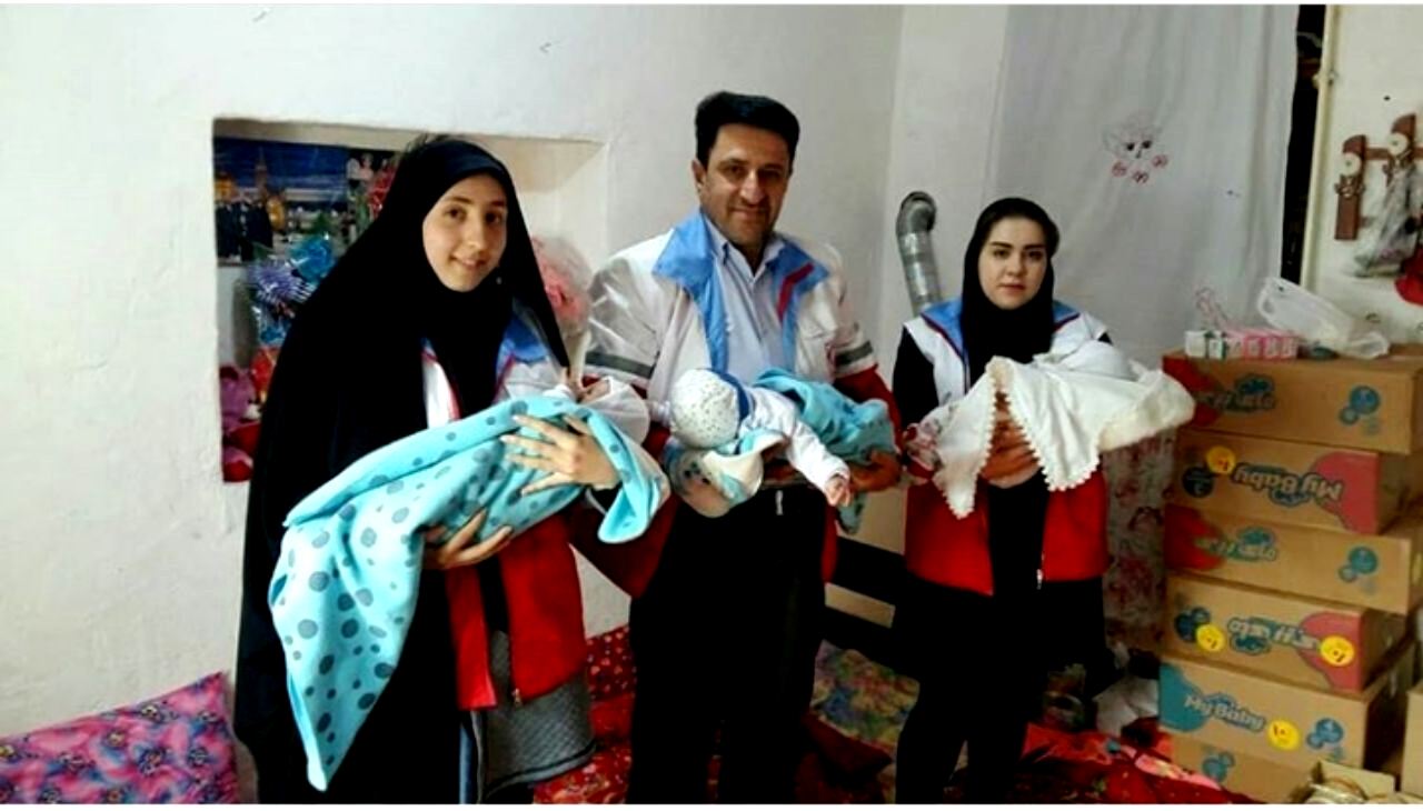 هدایای داوطلبان جمعیت هلال احمر اسکو به سه قلوهای گنبرفی