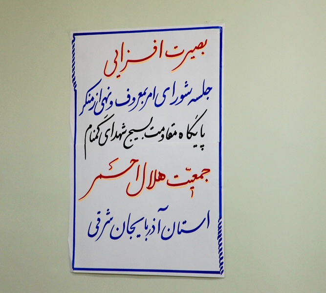 با حضور کارکنان و بسیجیان پایگاه مقاومت بسیج شهدای گمنام جمعیت هلال احمر استان آذربایجان شرقی شورای امربمعروف و نهی از منکر با عنوان بصیرت افزایی با هدف گرامیداشت ۹دی روز بصیرت برگزار شد.