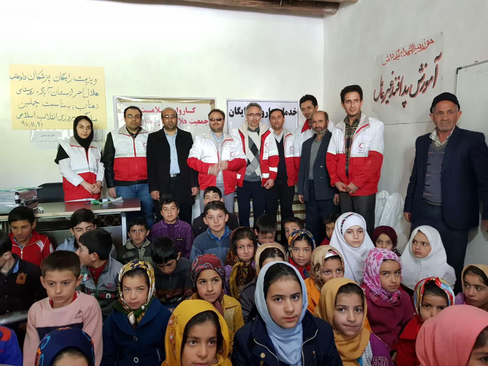 وی ادامه داد : کاروانهای سلامت علاوه بر ارائه خدمات دارویی و درمانی ،اقدام به توزیع لوازم التحریر و کیف و کفش و البسه در میان دانش آموزان روستاها نموده اند .