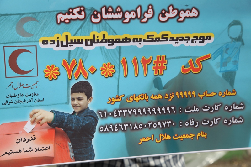 به گزارش روابط عمومی جمعیت هلال احمر استان آذربایجان شرقی؛ دکترسیدهادی موسوی در حاشیه بارگیری و ارسال کمکهای مردمی تحویلی به داوطلبان جمعیت هلال احمر استان در مصاحبه با بخش خبر شبکه سهند تبریز گفت : مردم نوعدوست  استانمان از بدو وقوع سیل مخرب  ،سیل  کمکهای نقدی و غیر نقدی خود را جهت ارسال به مناطق سیل زده به جمعیت هلال احمر تحویل داده اند که تا امروز سه شنبه 27 فروردین ،کمکهای مردمی بعد از تفکیک و بسته بندی در قالب 20 کامیون و وانت و تریلی به مناطق سیل زده ارسال شده است  که ارزش ریالی آنها بالغ بر 35 میلیارد ریال تخمین زده می شود .