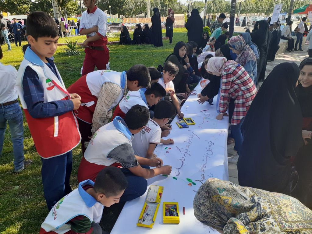جوانان و دانش آموزان هلال احمر شهرستان ملکان با برگزاری جشن دهه کرامت و ایستگاه نقاشی و نقاشی متری روی پارچه با موضوع عفاف و حجاب با این موضوع، بیشتر آشنا شدند.