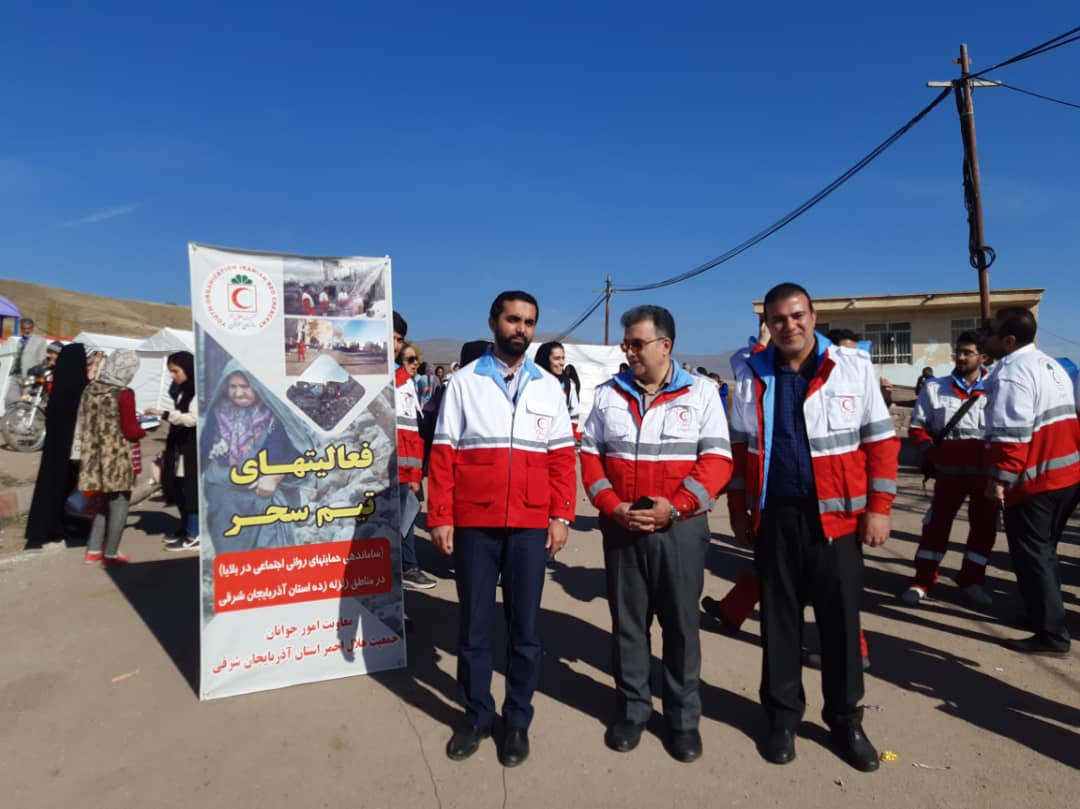 در ادامه برنامه ها رئیس سازمان جوانان هلال احمر با حضور در روستای زلزله زده دستجرد از توابع بخش ترکمنچای شهرستان میانه از روند خدمت رسانی تیم سحر بازدید و در جریان خدمات تیم های سحر در راستای حمایتهای روحی و روانی و بالینی قرار گرفت