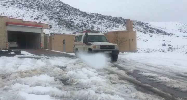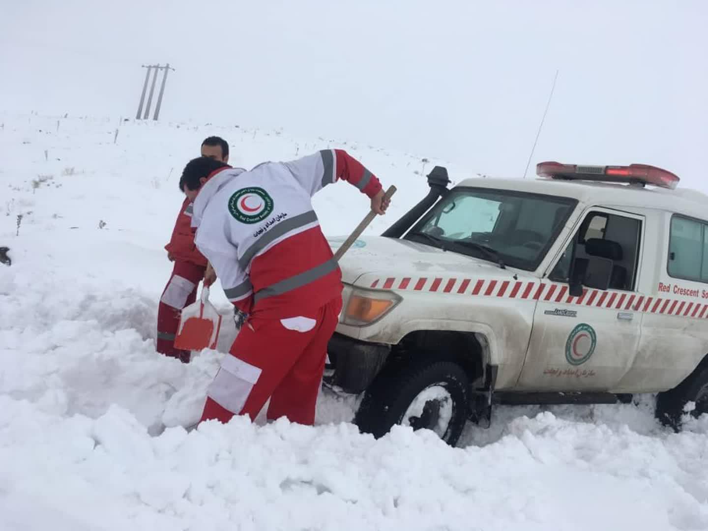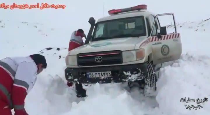 نجاتگران میانه ای به مصدومان و بیماران روستاهای زلزله زده بلوکان و برزلیق و قلعه جوق در برف و کولاک امدادرسانی کردند