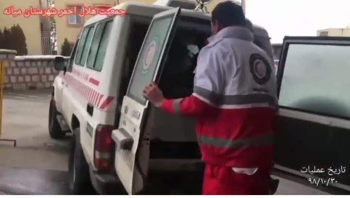 به گزارش روابط عمومی جمعیت هلال احمر استان آذربایجان شرقی، بدنبال تماس مدیریت بحران شهرستان میانه و اورژانس میانه ساعت ۱۲.۴۰ظهر ۹۸.۱۰.۳۰ با مرکز عملیات امداد هلال احمر میانه، مبنی بر اینکه مصدوم اورژانسی در روستای بلوکان به علت نامناسب بودن وضعیت جاده و محور فرعی روستایی ،نیازمند مساعدت فوری بوده و با توجه به شرایط ناپایدار جوی و عدم امکان پرواز اورژانس هوایی ، امدادگران پایگاه شهیدجواد  احمدی عجمی میانه به محل اعزام و بعد از ۵ساعت عملیات طاقت فرسا در برف و کولاک شدید و راهبندان ، مصدوم ۱۲ساله را به بیمارستان برکت امام خمینی (ره) میانه جهت ادامه درمان انتقال دادند.