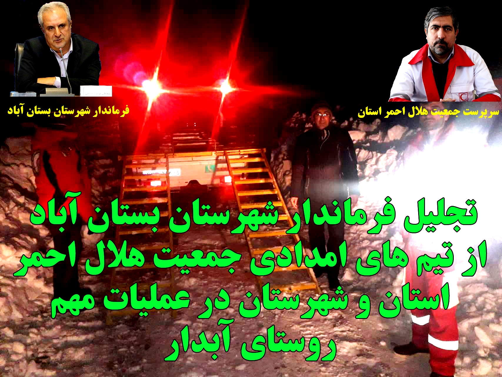 فرماندار شهرستان بستان آباد از تلاشهای 14 ساعته شبانه روزی  تیم های جمعیت هلال احمر استان و شهرستان بستان آباد در انتقال مادر بدحال روستایی تجلیل بعمل آورد .