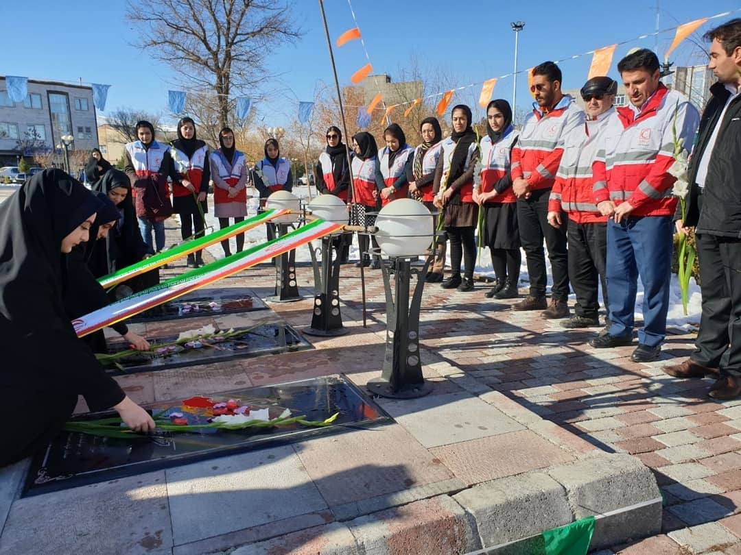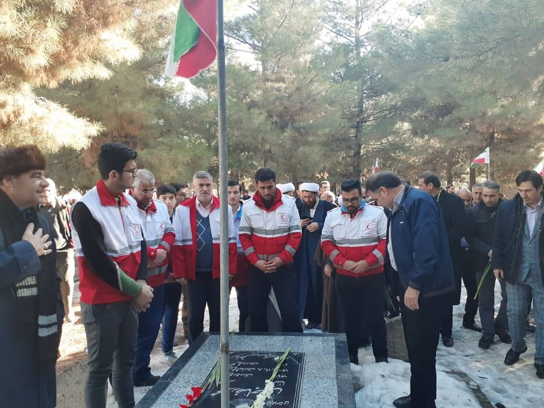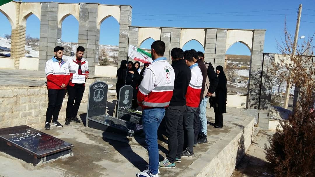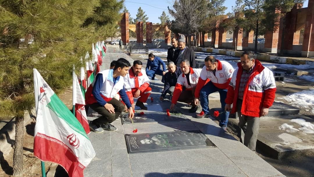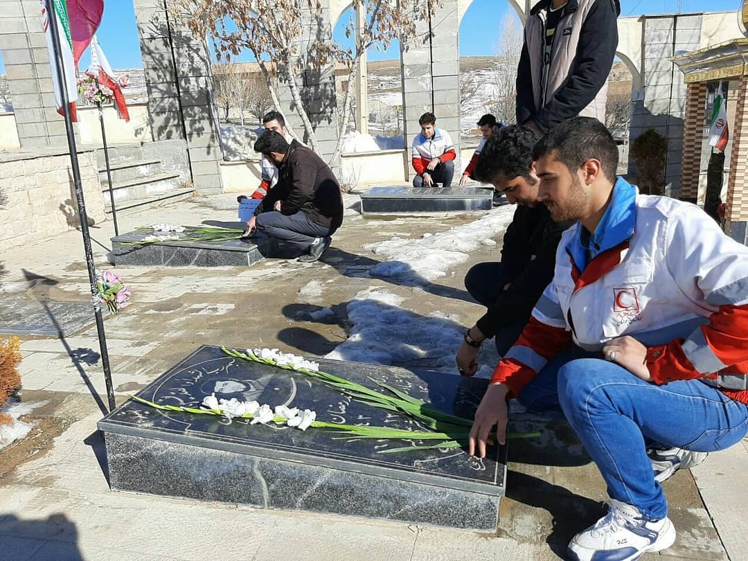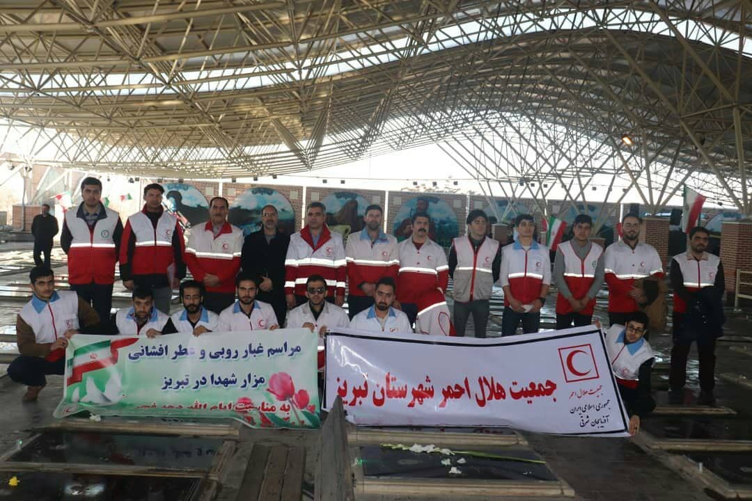 بمناسبت ایام الله دهه فجر ،جمعی از کارکنان و اعضای هلال احمر آذربایجان شرقی با حضور در مزار شهدا در سطح استان اقدام به غبار روبی و عطر افشانی مزار شهدای نمودند .
