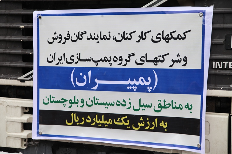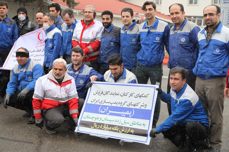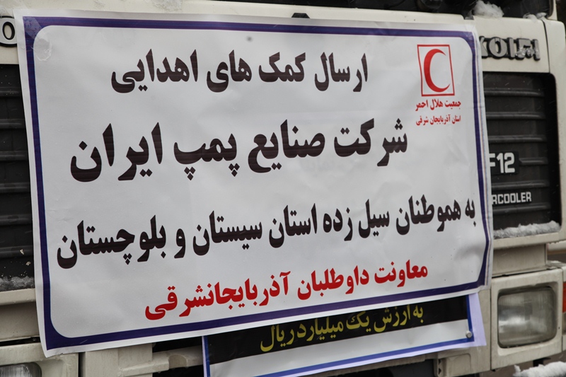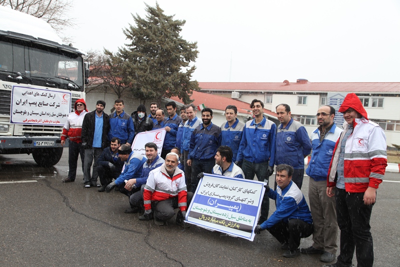 به گزارش روابط عمومی جمعیت هلال احمر استان آذربایجان شرقی ، حسین خیرجو  معاون داوطلبان جمعیت هلال احمر استان با تقدیر از کمکهای داوطلبانه کارکنان ، نمایندگان فروش، و شرکتهای گروه پمپ سازی ایران  (پمپیران) تبریز به سیل زدگان سیستان و بلوچستان  گفت : با هماهنگی های بعمل آمده با مهندس محمدحسین هیات  مدیر عامل محترم و مهندس رضا شرقی وند قائم مقام محترم  مدیر عامل شرکت پمپیران تبریز  کمکهای بشر دوستانه این شرکت به سیل زدگان استان سیستان و بلوچستان با یکدستگاه تریلرهلال احمر از شرکت پمپیران بارگیری و ارسال گردید .