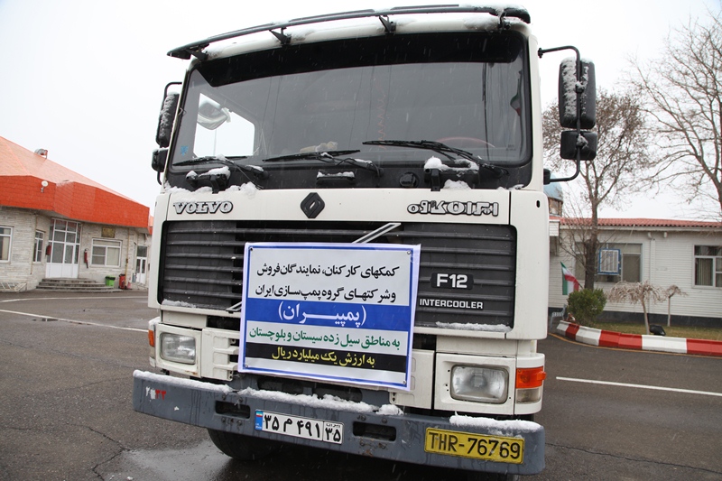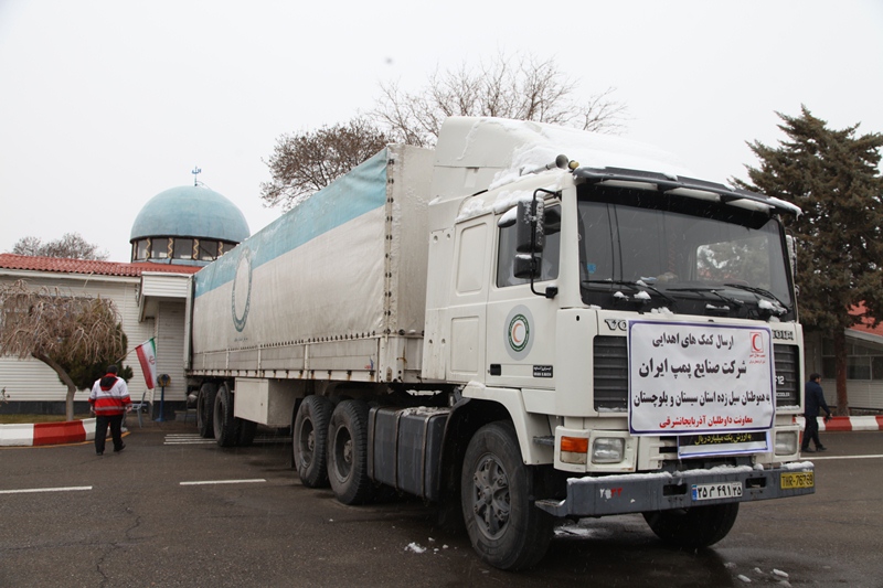 کمکهای بشر دوستانه شرکت پمپیران تبریز با هماهنگی هلال احمر آذربایجان شرقی با یکدستگاه  تریلر به استان سیستان و بلوچستان ارسال گردید .