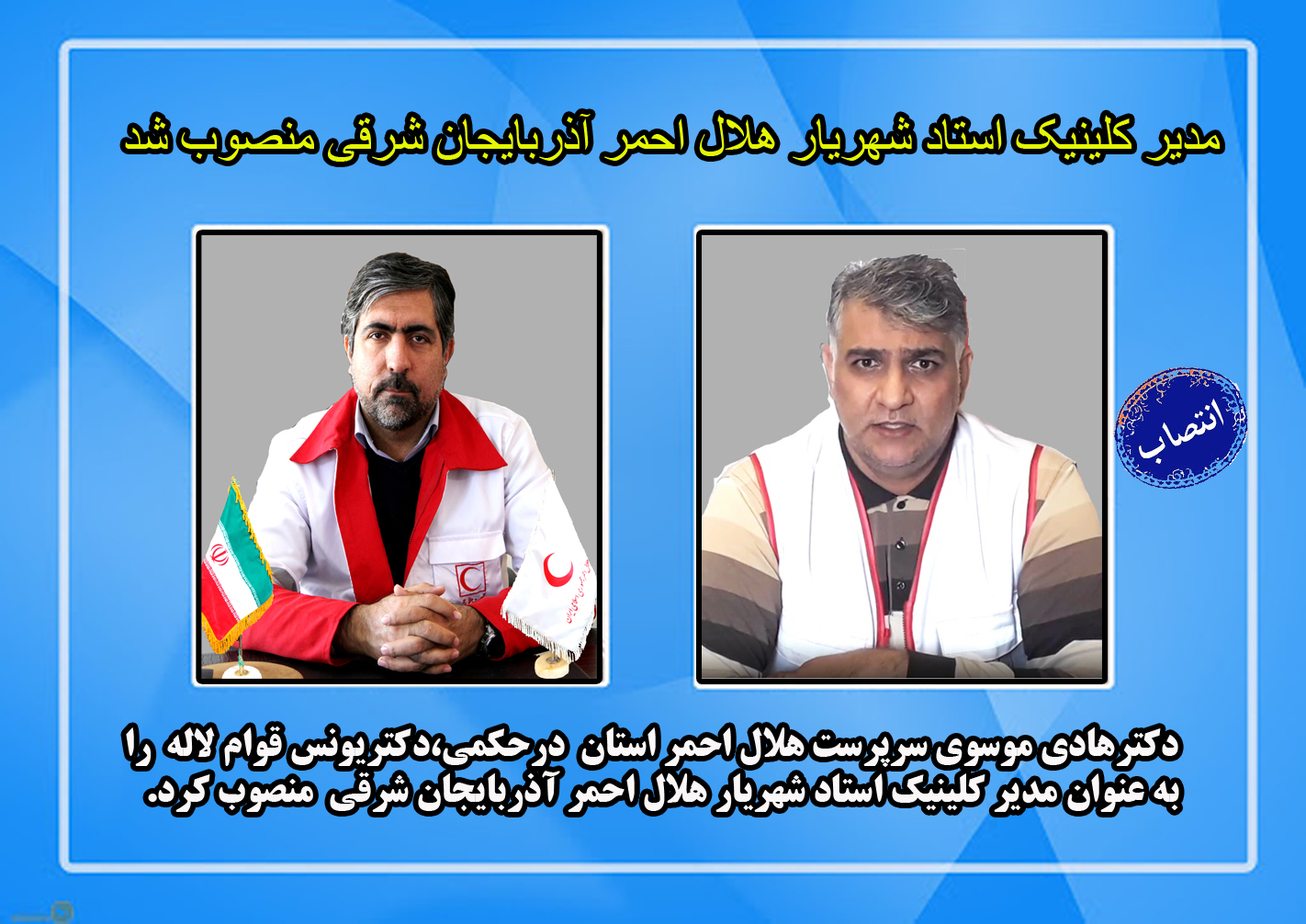 به گزارش روابط عمومی جمعیت هلال احمر استان آذربایجان شرقی ؛ در حکم دکتر موسوی خطاب به دکترقوام آمده است:احتراما با عنایت به تجربیات ارزنده جنابعالی در حوزه بهداشت و درمان به موجب این حکم بعنوان مدیر کلینیک استاد شهریار جمعیت هلال احمر استان منصوب می شوید ، امیداست با بهره گیری از پتانسیل های موجود نسبت به ارتقا همه جانبه آن مجموعه اقدام فرمایید ، بالندگي و توفيق روز افزون شما را در خدمت به مردم شریف و مراجعین محترم و پیشبرد اهداف والاي جمعيت هلال احمر از درگاه خداوند منان، مسئلت می نمایم .