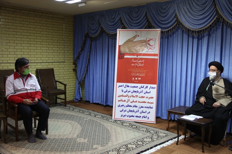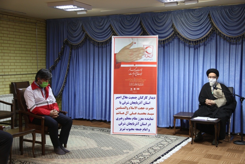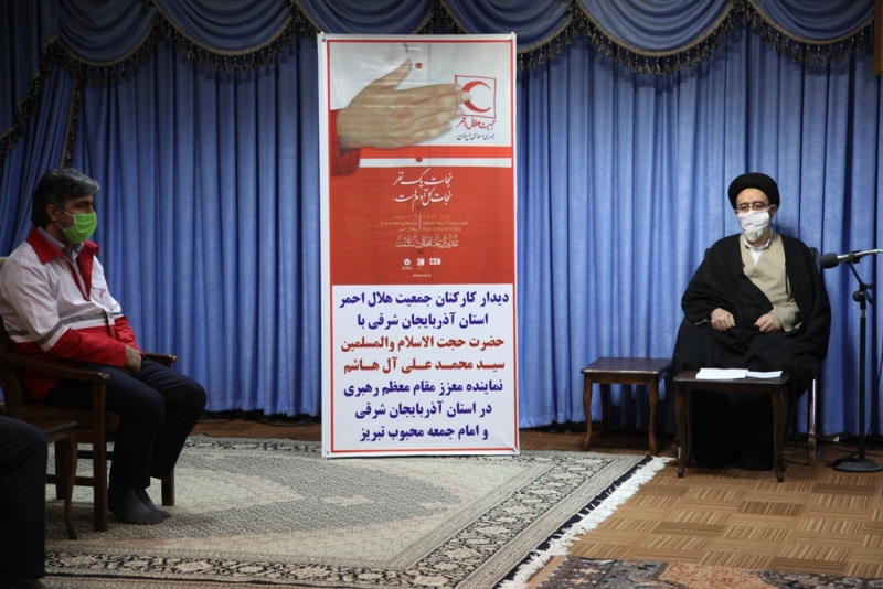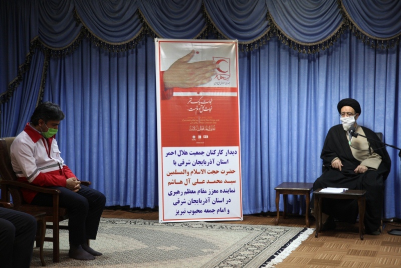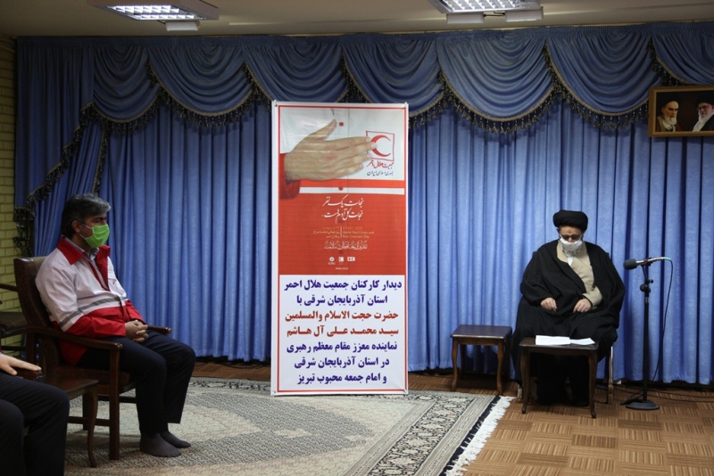 به گزارش روابط عمومی جمعیت هلال احمر استان آذربایجان شرقی ، در این دیدار حجت الاسلام والمسلمین سید محمد علی آل هاشم با تبریک روز جهانی صلیب سرخ و هلال احمر گفت : جمعیت هلال احمر در بحران کرونا، با بسیج تمامی امکانات خدمات ارزشمندی انجام داد که من در اینجا به تمامی نیروهای جمعیت هلال احمر بعد از ماهها تلاش در راستای مبارزه با ویروس کرونا ، خدا قوت عرض می کنم.