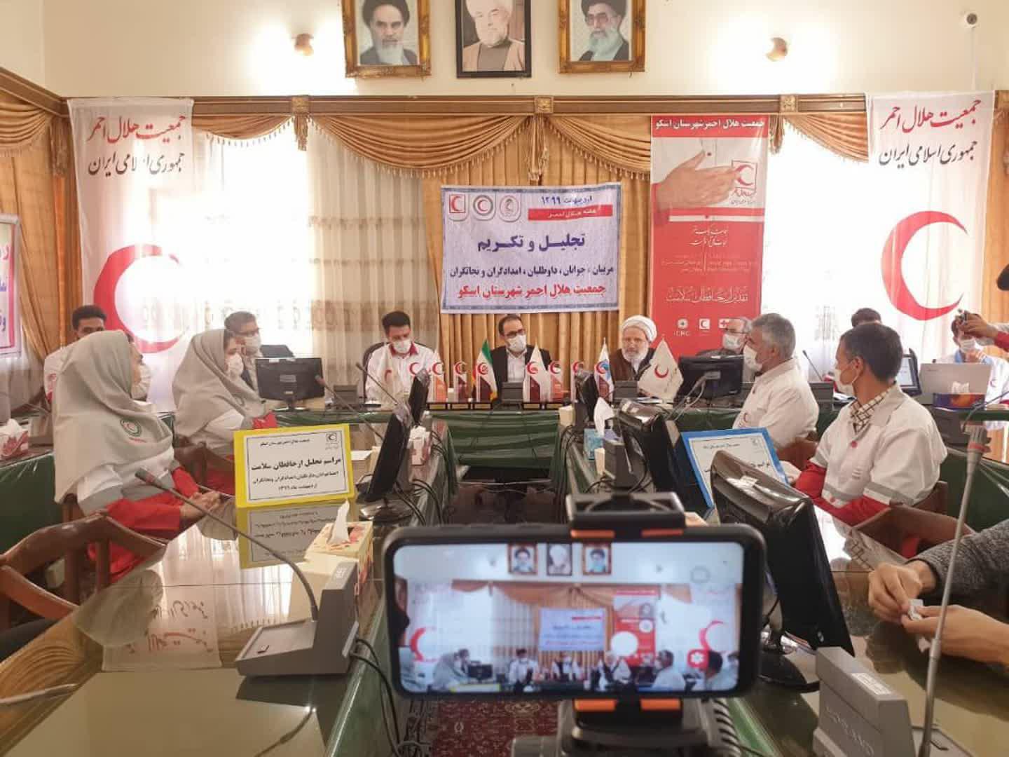 همچنین به ۷ نفر ازاعضا جوانان ، داوطلبان،امدادگران ونجاتگران برتر و نمونه که درسال ۱۳۹۸ همکاری صمیمانه با جمعیت داشتند و همچنین درطرح غربالگری وتب سنجی و فاصله گذاری اجتماعی در جبهه مبارزه با ویروس منحوس کرونا حضور فعال داشتند با اهدا تندیس ویژه جمعیت هلال احمر شهرستان اسکو بعنوان جوان ،داوطلب وامدادگر برتر حافظ سلامت تجلیل بعمل آمد.