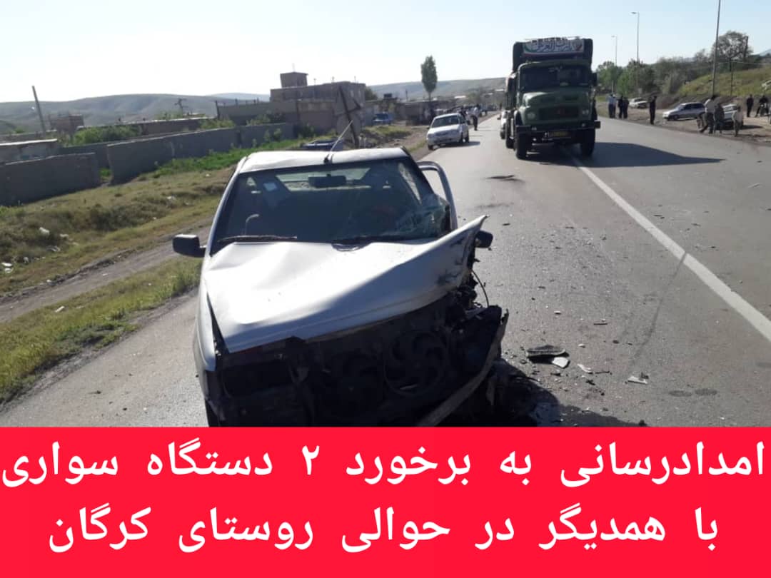 در این حادثه که در حوالی روستای کرگان اتفاق افتاده بود   ۴نفرمصدوم شده بودند که نجاتگران پایگاه امداد جاده ای شیبلی  بعدازرهاسازی ، مصدومین را جهت ادامه درمان  انتقال به مراکز درمانی  تحویل اورژانس115شیبلی نمودند .