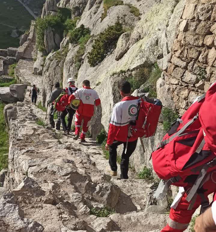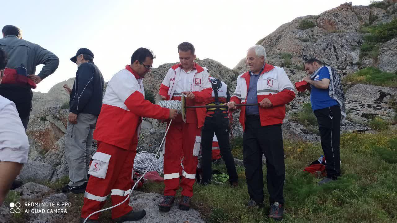 تیم امداد هوایی و کوهستان جمعیت هلال احمر استان طی یک عملیات سخت و منحصربفرد  کوهنورد گرفتار در شکاف صخره های قلعه بابک را نجات دادند .