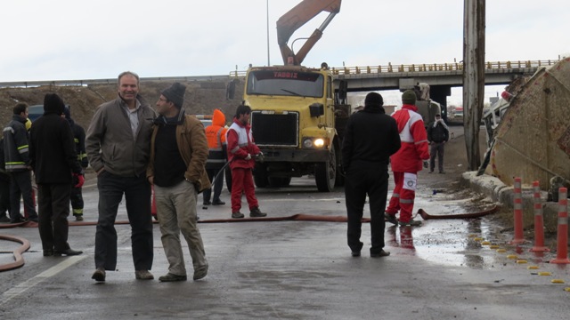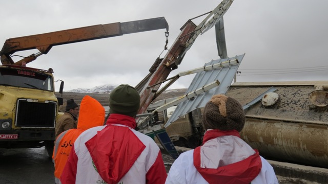 بنابرتماس تلفنی پلیس 110 مبنی برواژگونی تانکرحامل موادپتروشیمی که درمحوربستان آباد-تبریز اتفاق افتاده بود نجاتگران پایگاه امدادجاده ای شیبلی شهرستان بستان آباد بهمراه کارکنان جمعیت هلال احمراین شهرستان فورا به محل اعزام شده وعملیات رادرساعت 12 شب جمعه شروع کردند وپس ازانتقال راننده مصدوم  به مراکزدرمانی به کنترل موادقابل اشتعال وعایق برق وامحاء موادپتروشیمی ازمحل نمودندوپس از 17 ساعت عملیات نفسگیر این عملیات ساعت 14 روزگذشته به پایان رسید.