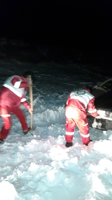 وی ادامه داد: نجاتگران جمعیت هلال احمر علی رغم بسته بودن مسیر در تاریکی شب پس از یک عملیات سخت و طاقت فرسا توانستند خودرا به پژو گیر کرده در برف رسانده وهر سه سر نشین را نجات دهند