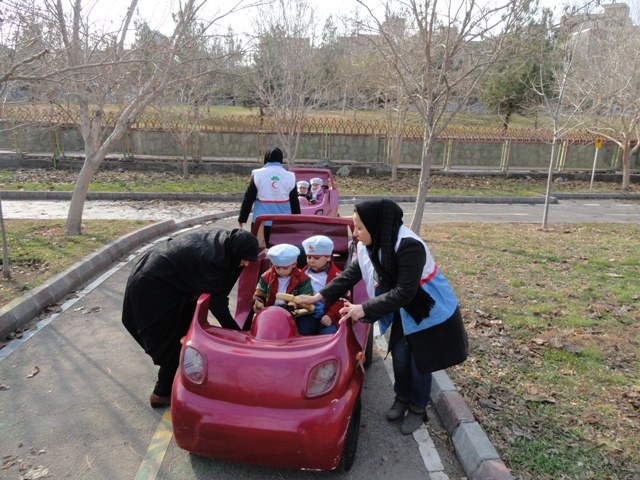 بنابراین گزارش دراین مکان اعضای غنچه های هلال بااستفاده ازماشینهای شارژی با چراغهاوتعدادی از علائم راهنمایی و رانندگی و نحوه رد شدن از خطوط عابر پیاده آشنا شدند.