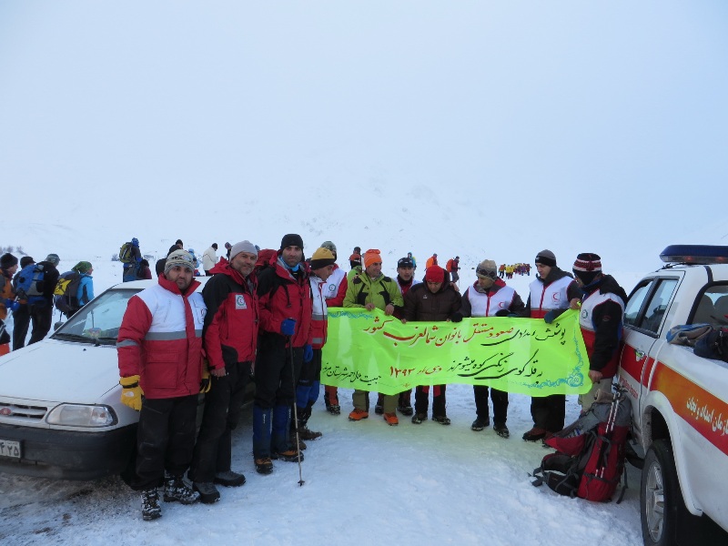 نجانگران تیم تخصصي امداد و نجات كوهستان جمعیت هلال احمرشهرستان مرند و تیم امدادو نجات کوهستان استان نسبت به پوشش امدادي نخستين صعود سراسري زمستاني مستقل بانوان منطقه شمالغرب كشور به قله گوي زنگي مرند اقدام نمودند