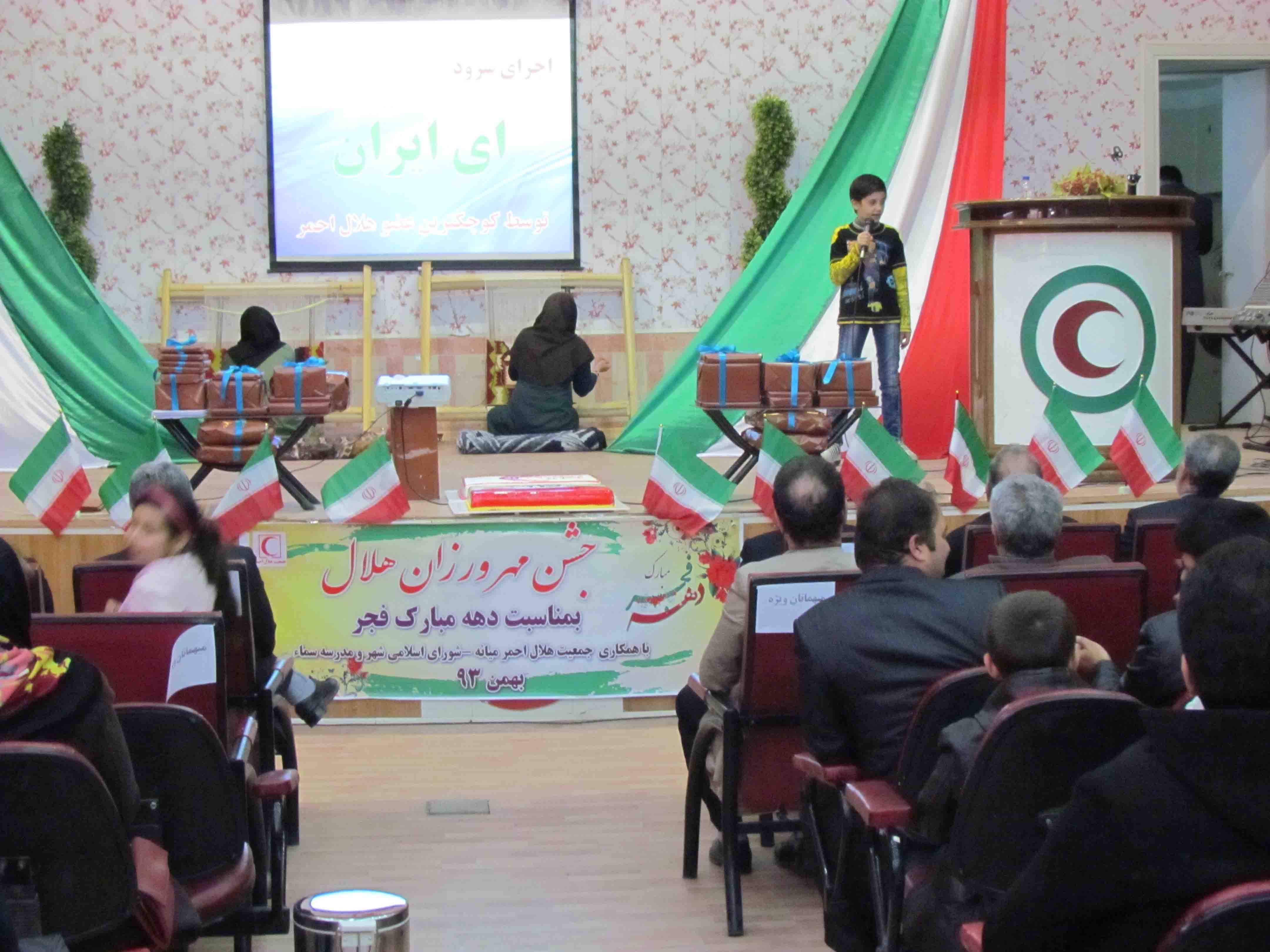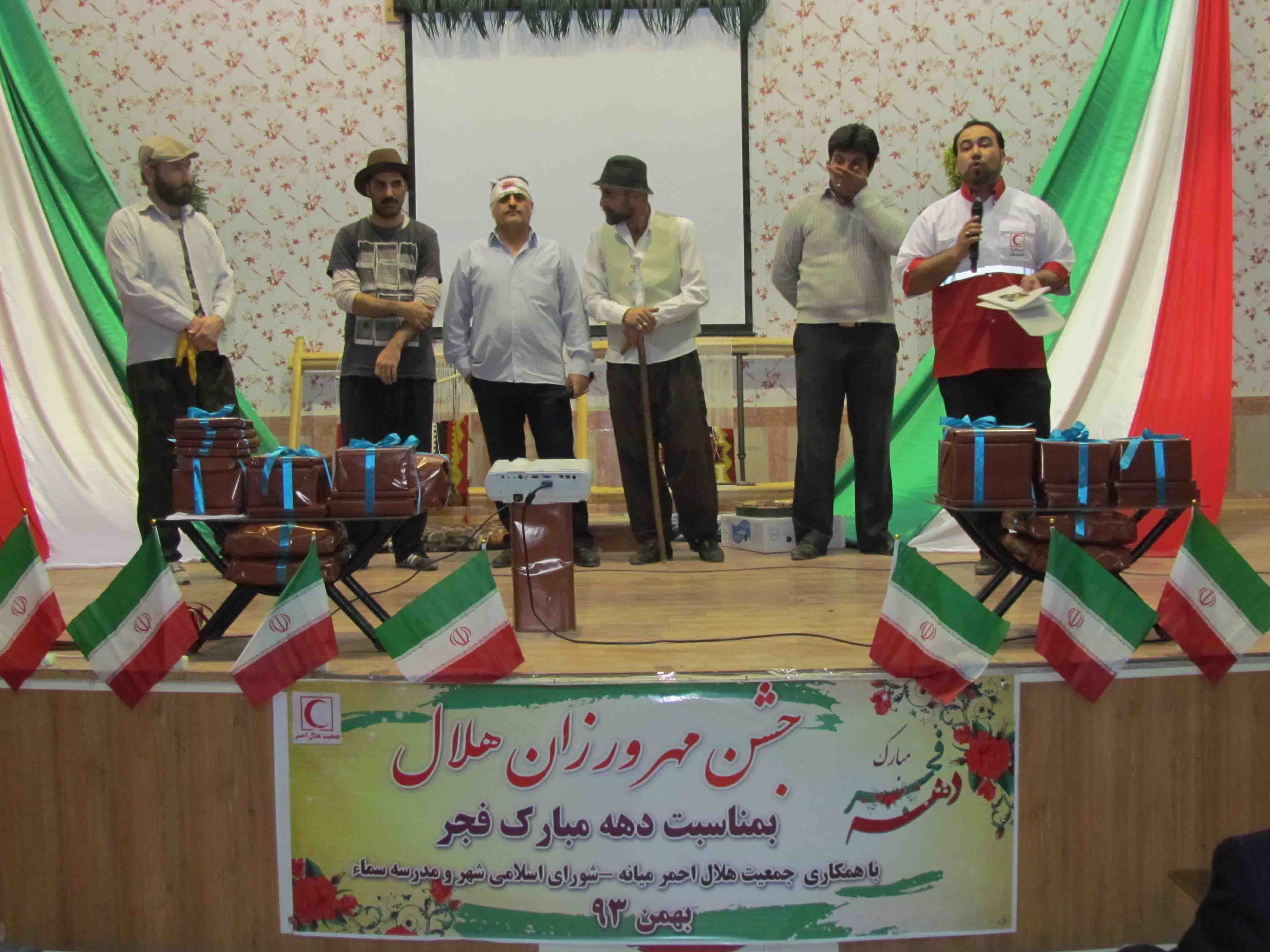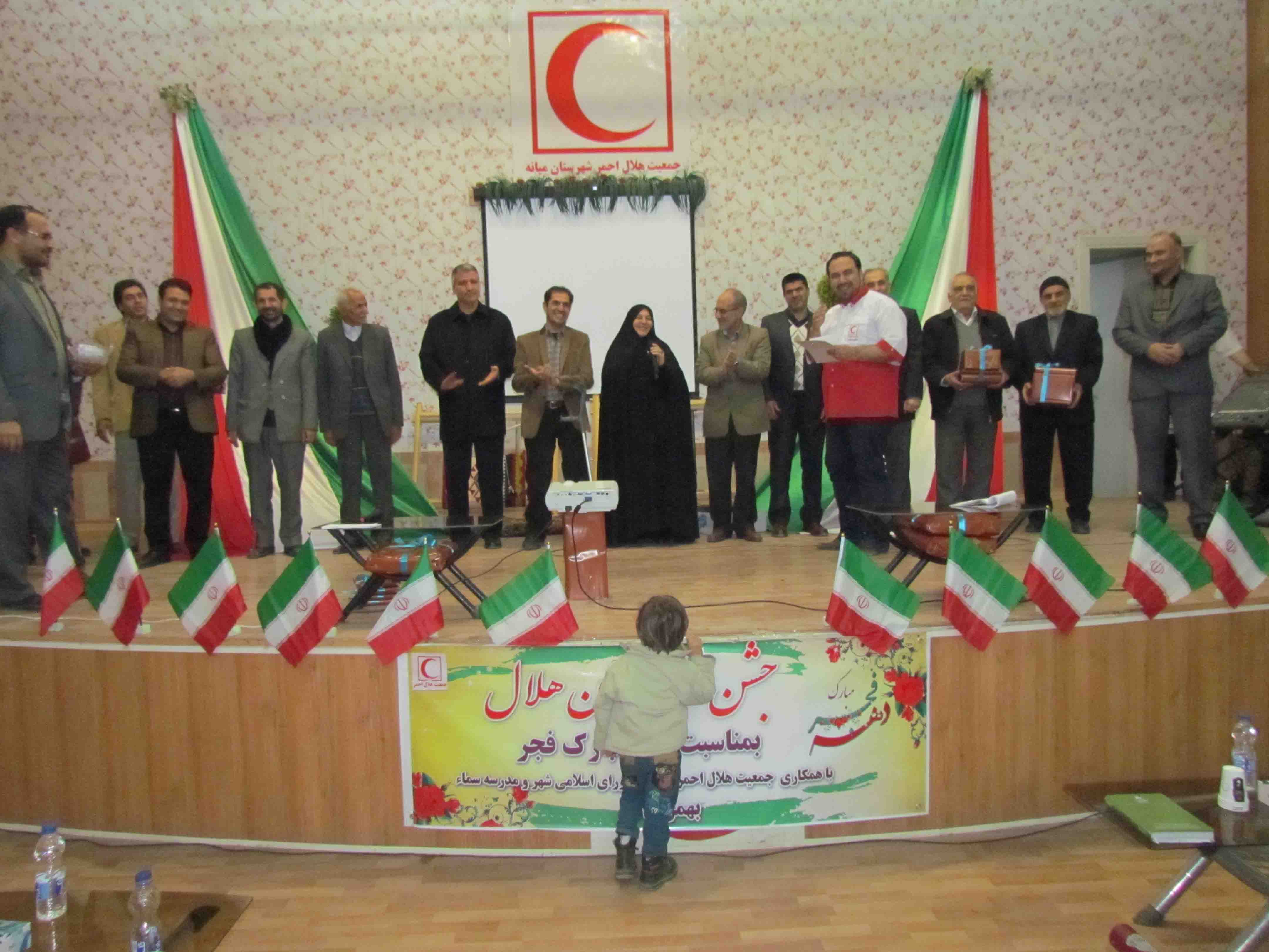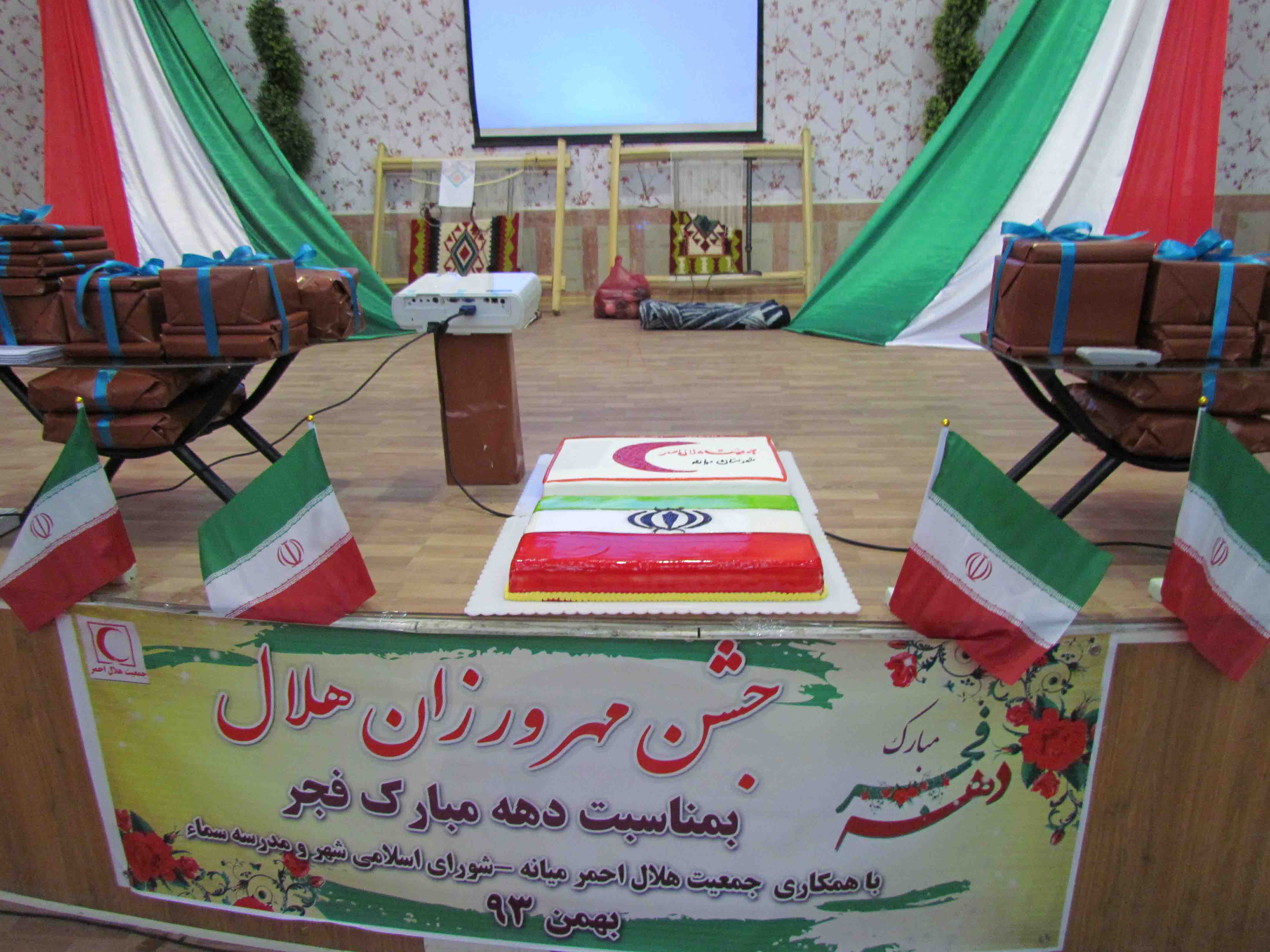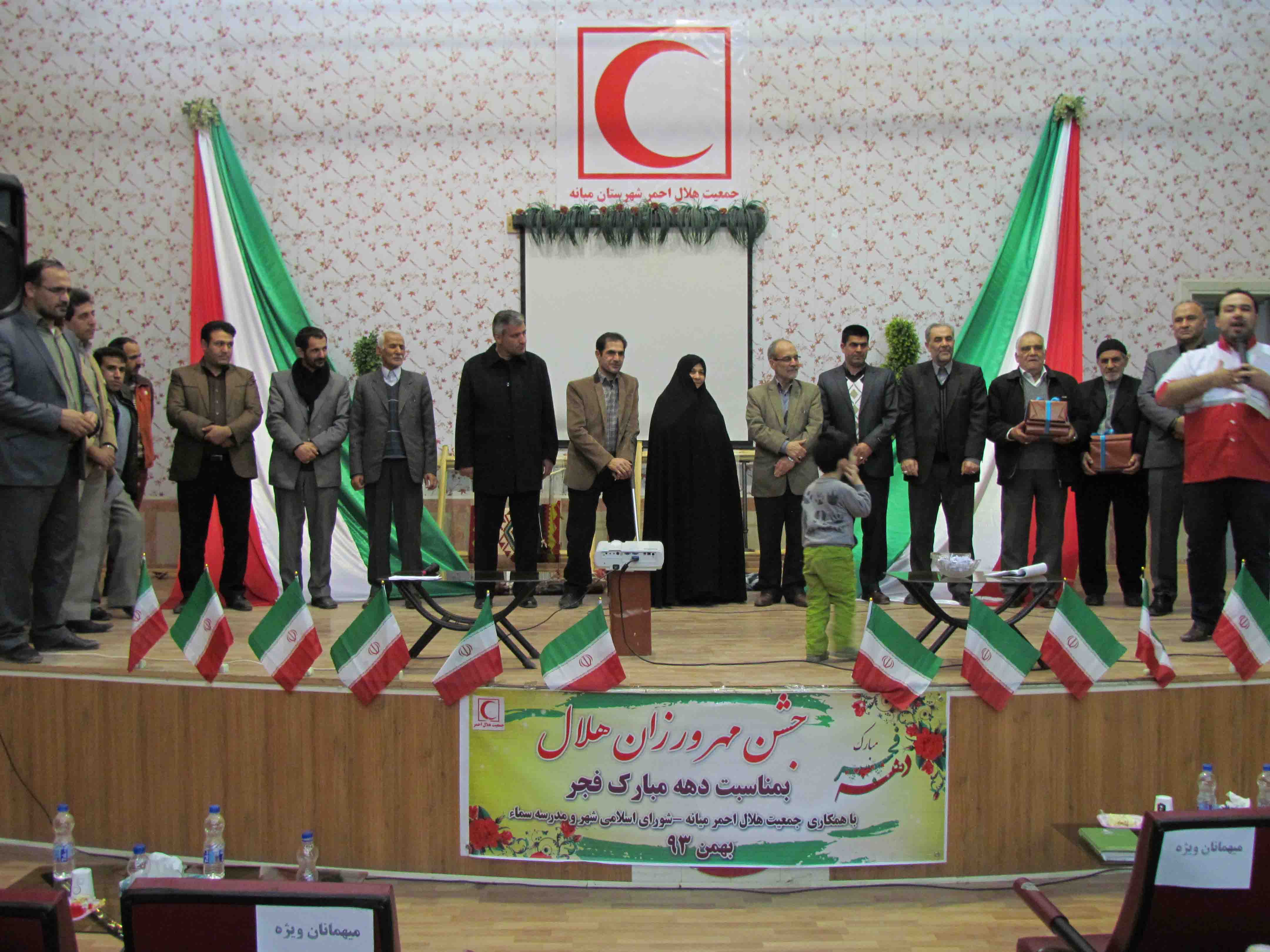 جشن "مهرورزان هلال "توسط جمعیت هلال احمرشهرستان میانه به مناسبت دهه مباركه فجربرگزارگردید.