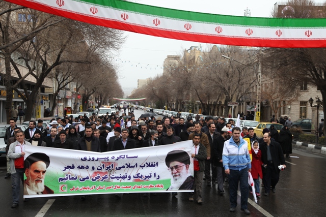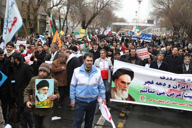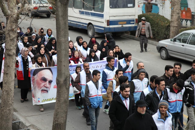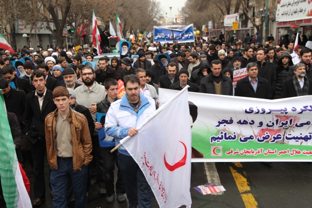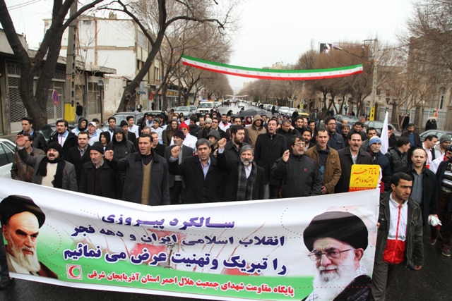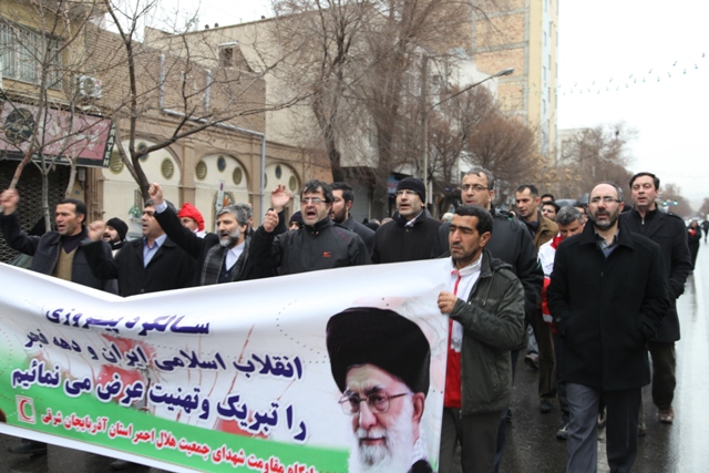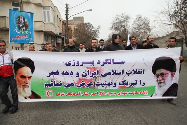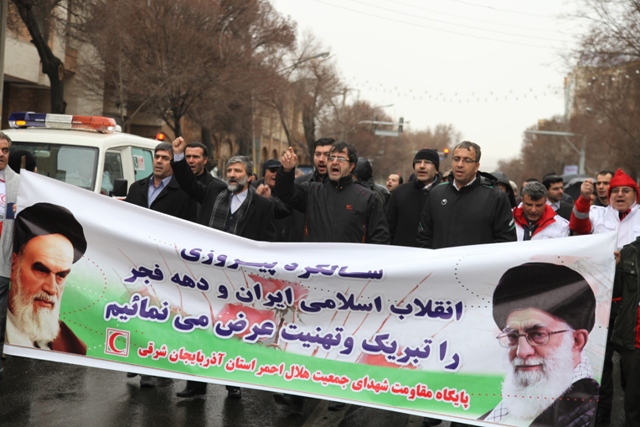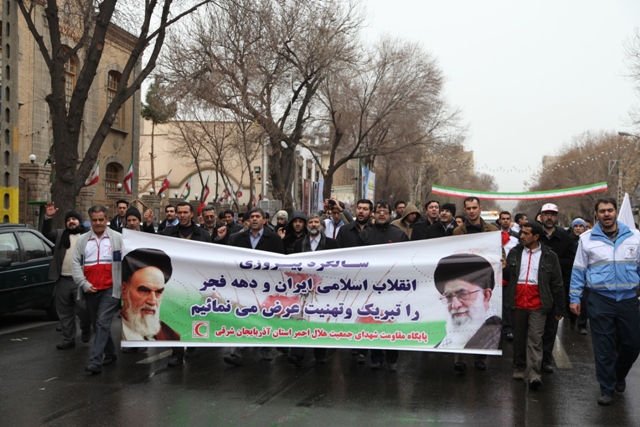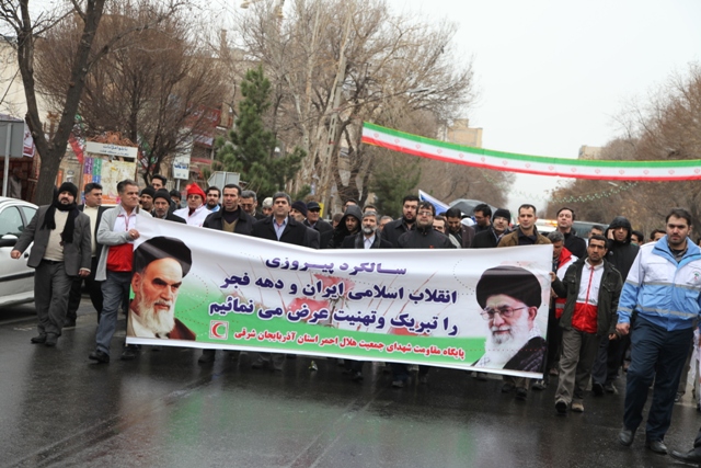 از نخستین ساعات صبح امروز اعضای جمعیت هلال احمر استان آذربایجان شرقی با حضور گسترده خویش در راهپیمایی با شکوه یو م الله 22 بهمن باردیگر با آرمانهای امام راحل و شهدا تجدید میثاق کرده و وفاداری خودرا به نظام و انقلاب و ولایت نشان دادند