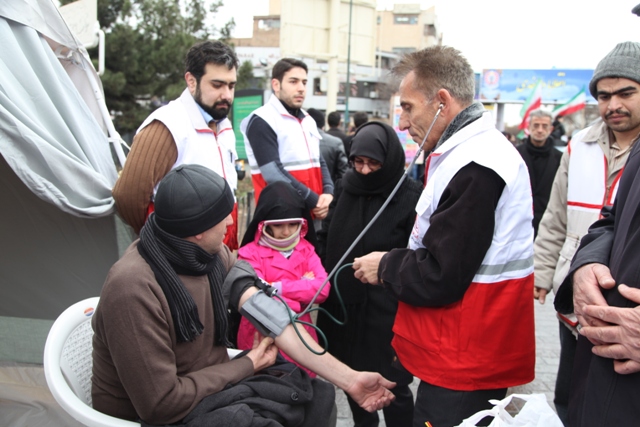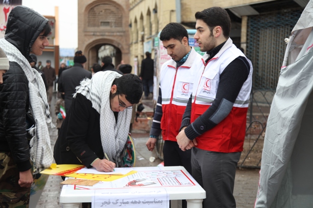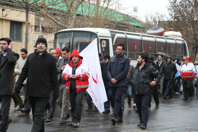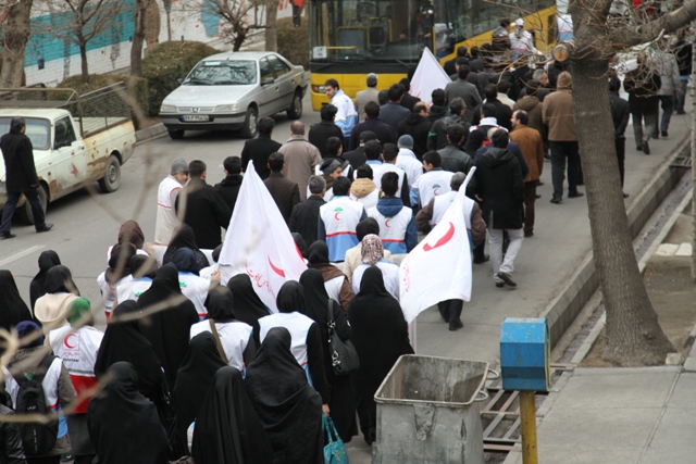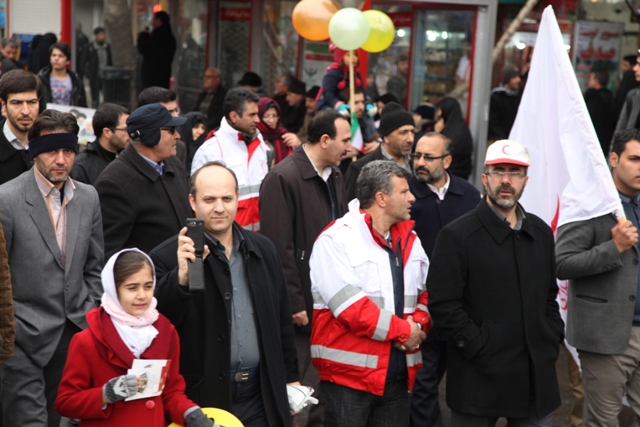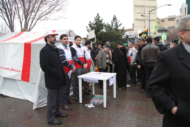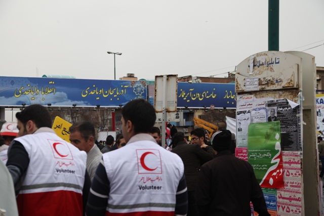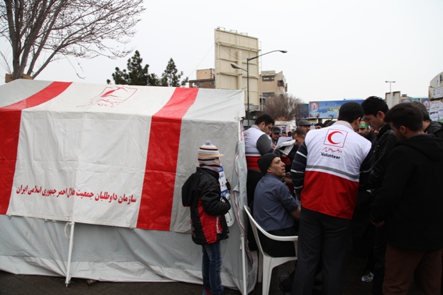 اقدامات هلال احمر آذربایجان شرقی در راهپیمایی 22 بهمن/شرکت گسترده اعضای هلال احمر در راهپیمایی/ پشتیبانی زمینی و هوایی واستقرار چادرهای سلامت در مسیرهای راهپیمایی