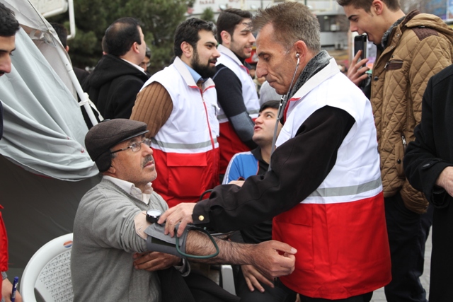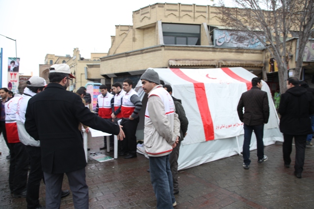 همزمان با تجمع عظیم مردم کلانشهر تبریز داوطلبان جمعیت هلال احمر استان در چندین نقاط اقدام به بر پایی چادرهای سلامت در مسیرهای راهپیمایی کرده و خدماتی از قبیل تست فشار و قند خون را ارائه و با توزیع فرم جذب اعضا نسبت به جذب اعضای جدید برای داوطلبان اقدام کردند.