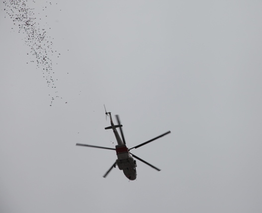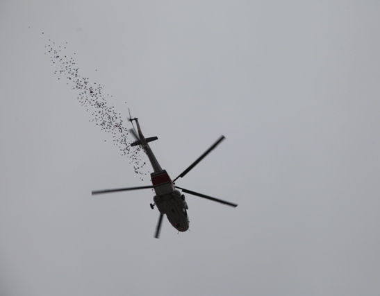 بالگرد هلال احمر آسمان تبریز را گلباران کرد