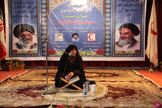 مرحله استاني اولين جشنواره سراسري قرآن و عترت سازمان جوانان جمعيت هلال احمر استان آذربایجان شرقی "ویژه خواهران" یادواره نماینده فقید ولی فقیه در هلال احمر شادروان حضرت آیت الله غیوری در سالن اجتماعات استان و با حضور 129 نفر از اعضاء خواهر و پرسنل برگزار شد.