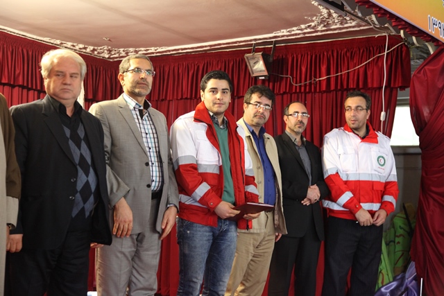 در ادامه مراسم به امدادگرانی که تازه به اعضای خانواده سازمان امدادو نجات ملحق شده اند در جه اعطا شد.