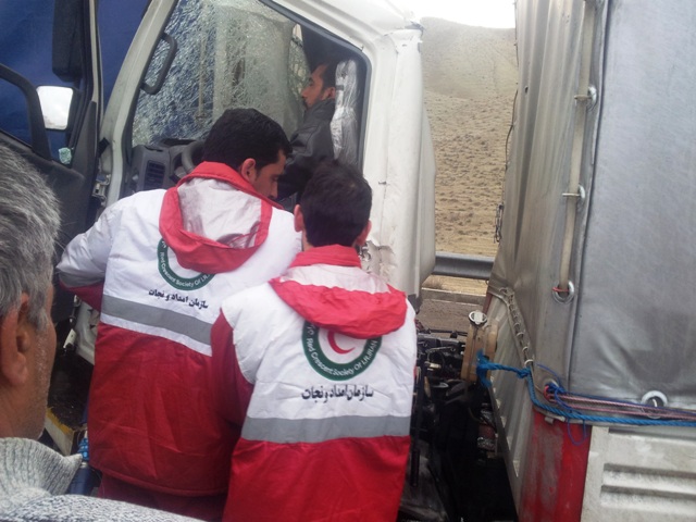 نجاتگران جمعیت هلال احمرشهرستان چاراویماق طی یک عملیات امدادی توانستند راننده کامیون را نجات دهند
