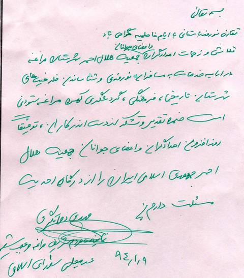 به گزارش روابط عمومی جمعیت هلال حمراستان آذربایجان شرقی، دکترمهدی  دواتگری نماینده مراغه وعجب شیرو رئیس کمیته مطالبات ملی و عضو کمسیون امنیت ملی و سیاست خارجی با اشاره به خدمات ارزشمند هلال احمر به مسافران نوروزی  از اقدامات  امدادگران واعضاءجوانان راهنمایان نوروزی جمعیت هلال احمر تقدیر وتشکر نمودند .